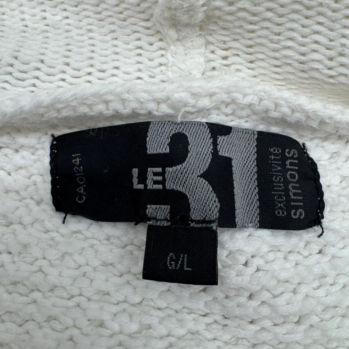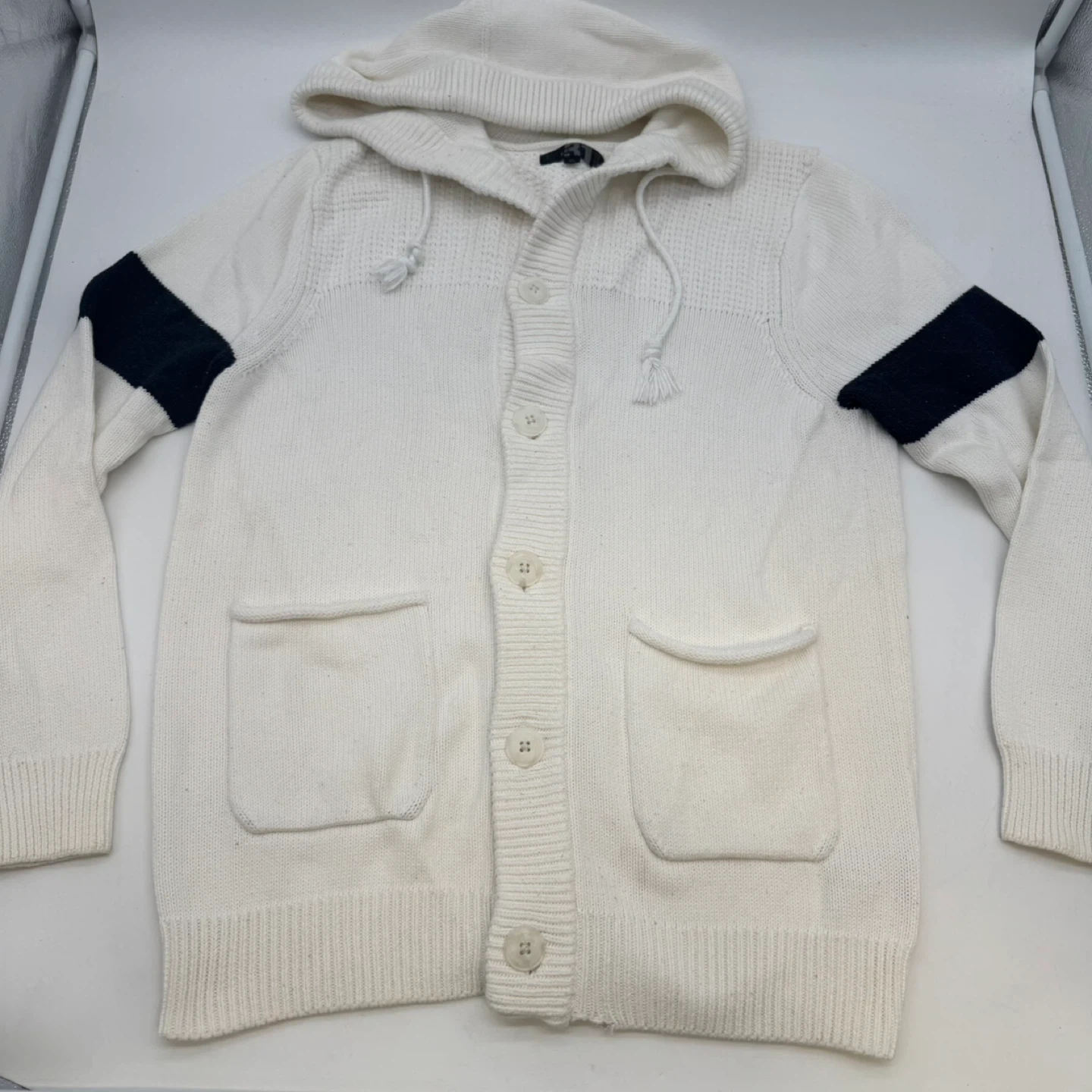 Men’s Cream Hooded Knit Cardigan Sweater Size L 100% Cotton