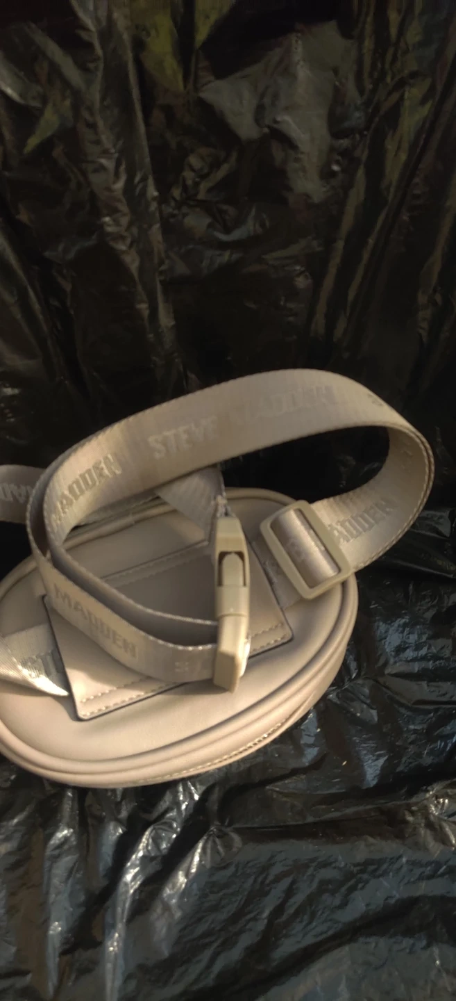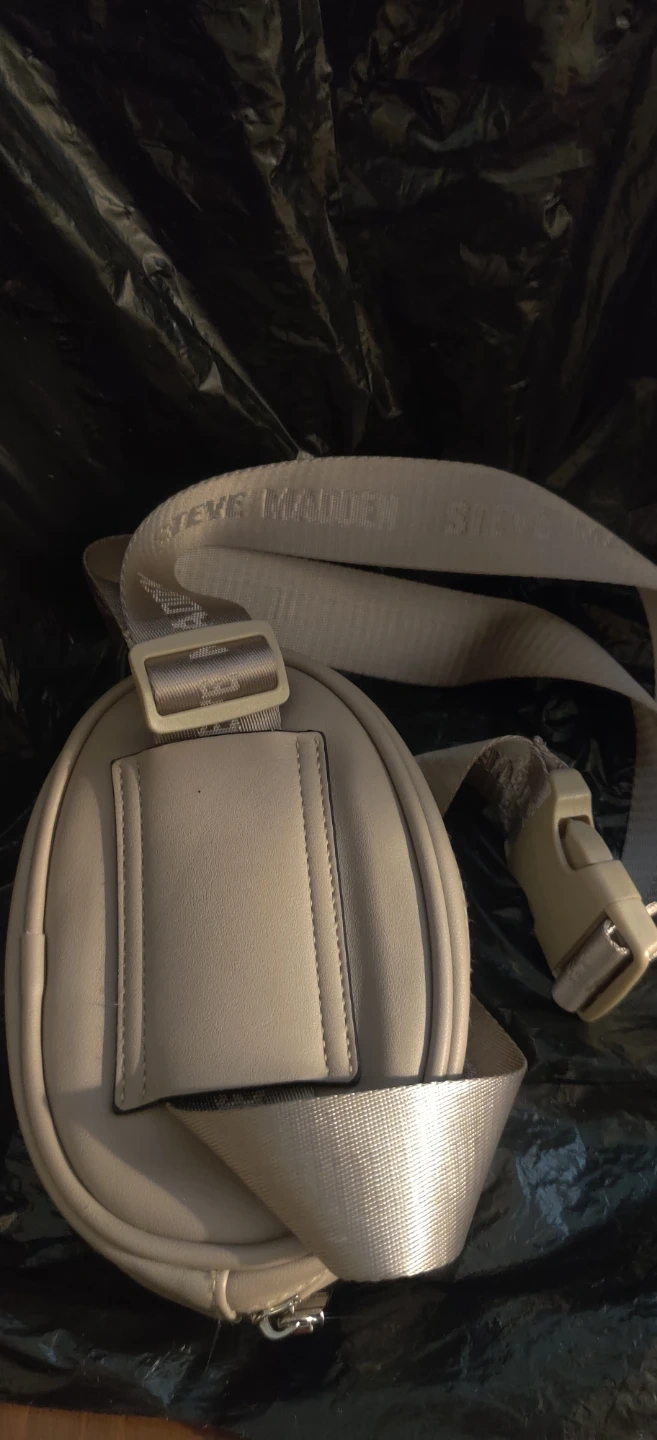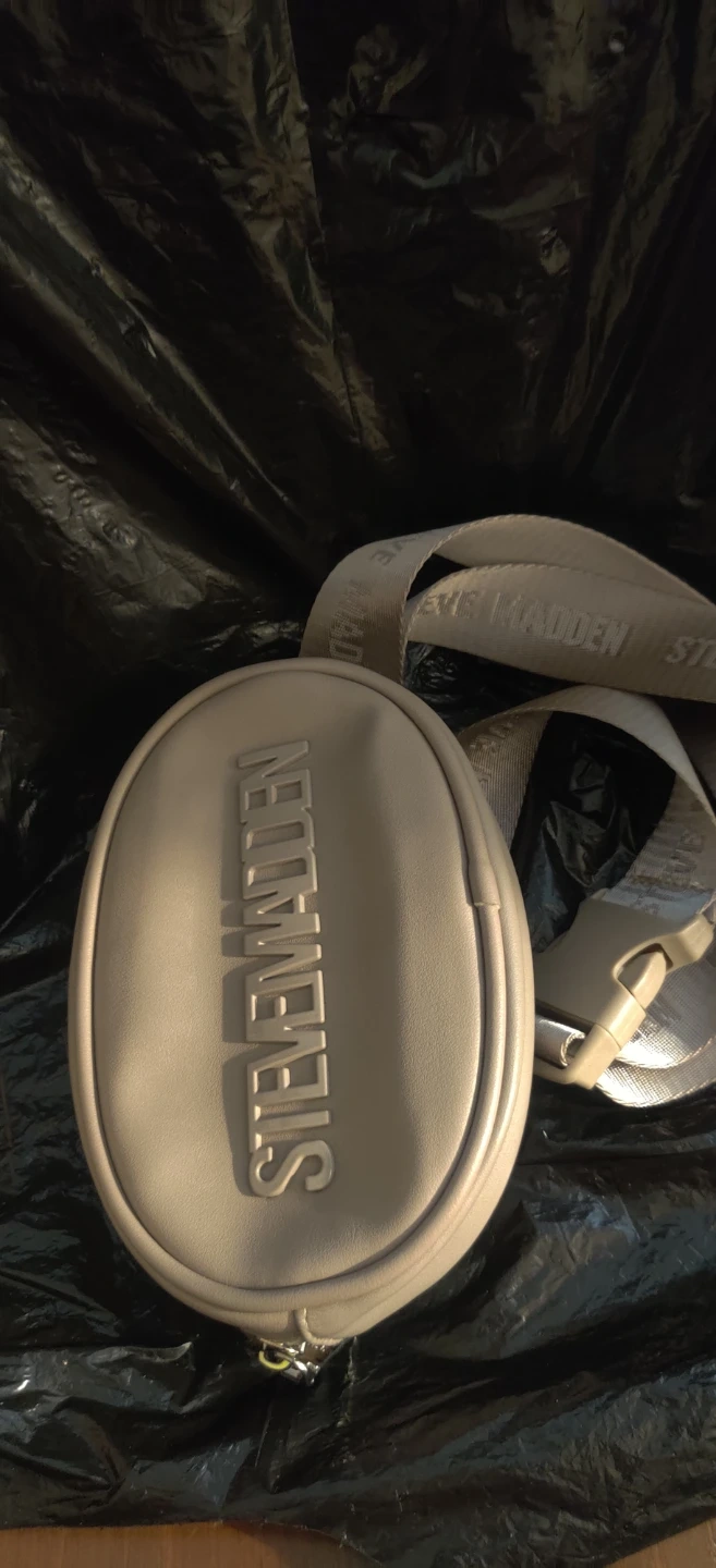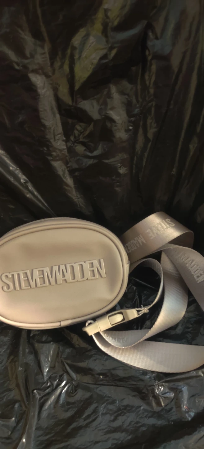 A stylish Steve Madden fanny pack in a tan colour. It features an adjustable strap with a buckle closure. The 'Steve Madden' logo is embossed on the front.New and without tags. Big enough for cellphones