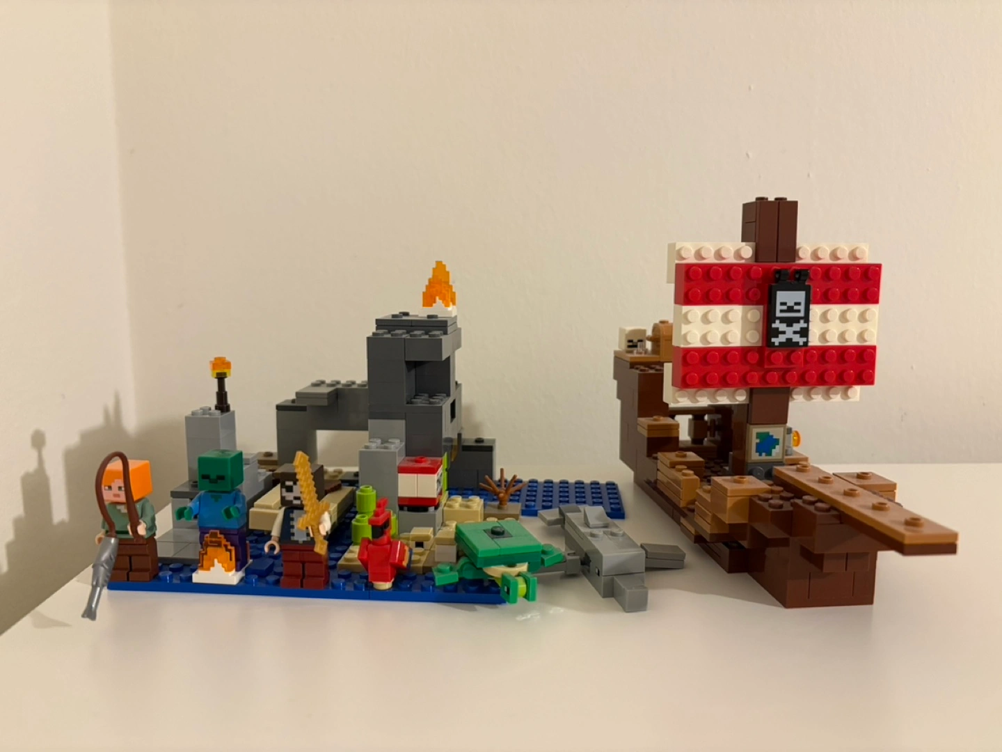 Pre-owned LEGO Minecraft set. Includes pirate ship, island scene, and minifigures. Complete set very good condition.