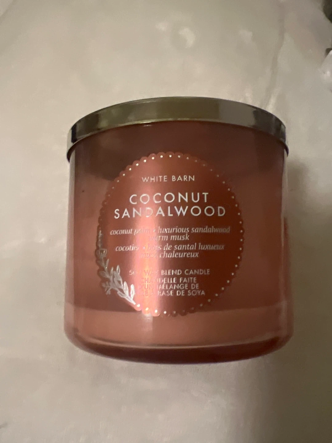 This White Barn candle features a Coconut Sandalwood scent. It's a 3-wick blend candle made with a soy wax blend. Enjoy the warm and luxurious fragrance!