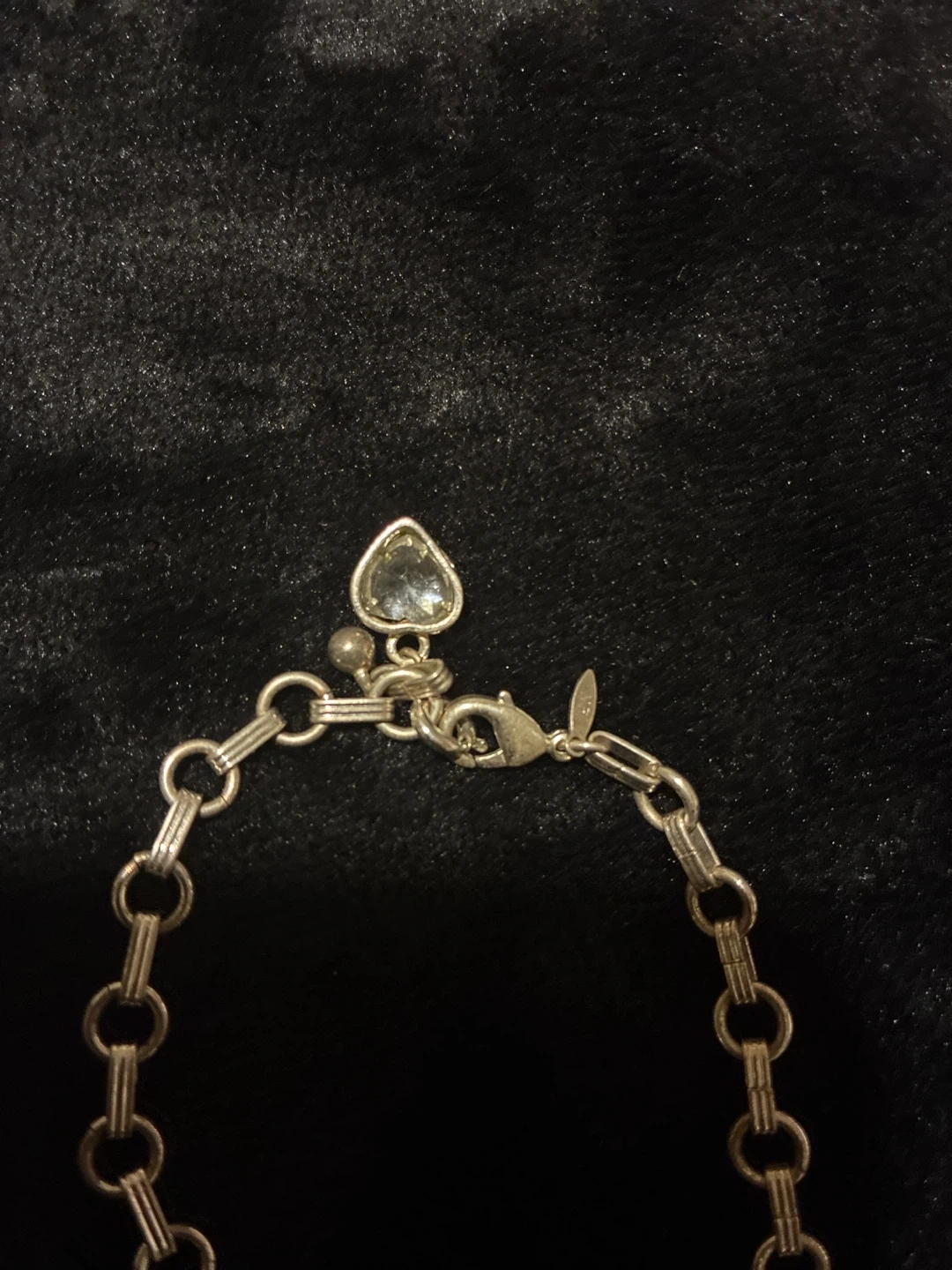 This silver tone charm bracelet features a delicate chain with a heart-shaped pendant. It has a lobster claw clasp for secure closure. Vintage jewelry by Avon. Perfect for adding a touch of sparkle to any outfit!