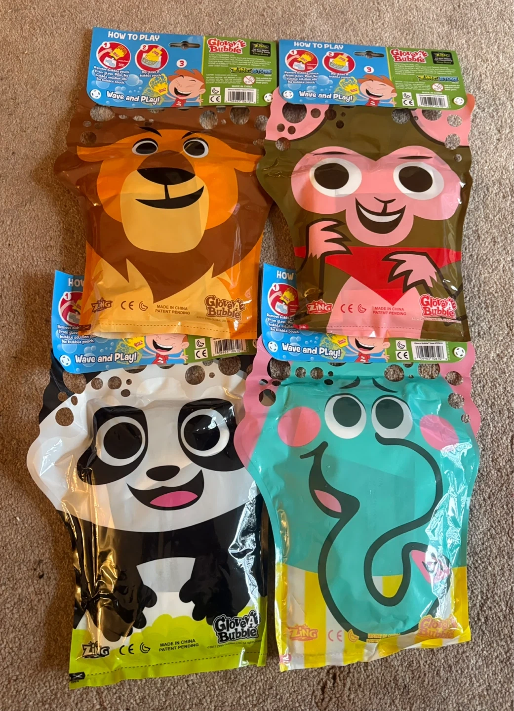 4 - animal themed glove bubbles.
