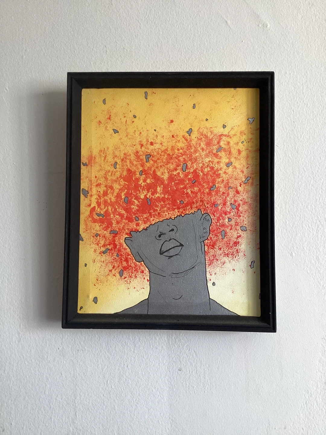 This unique framed art piece was designed and painted by my beautiful wife. It features a striking abstract design with a pop of colour. It's a great conversation starter for any room. Ready to hang and add a modern touch to your decor! We are currently selling everything we own to buy a van and run away. Check out our other listings!
