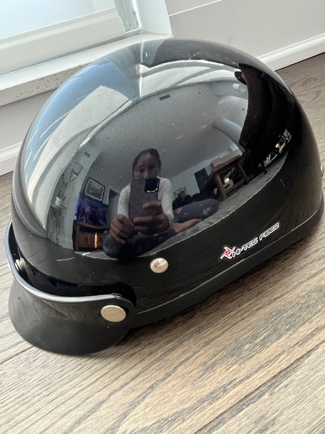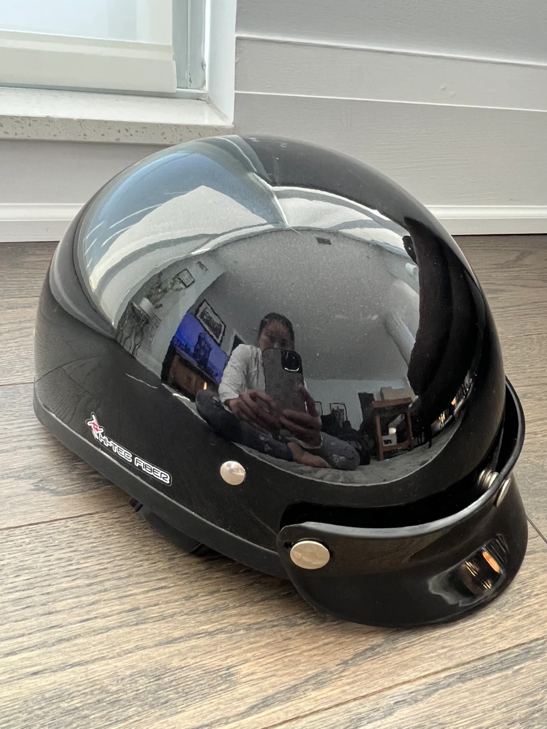 Selling a Hi-Tec Fiber black motorcycle helmet, designed for safety and style on the road. This DOT-approved helmet offers reliable protection with a sleek, glossy black finish and a convenient visor. While it has been previously loved, it's still in great shape for your rides. Features: - Brand: Hi-Tec Fiber - Colour: Black - Visor: Yes - Safety Standard: DOT Approved Looking at similar motorcycle helmets, a reasonable price range is between $40 and $80, so I am asking $20. If the ad is up, the helmet is still available! Grab this helmet and let your head hug it goodbye before it embarks on new adventures!