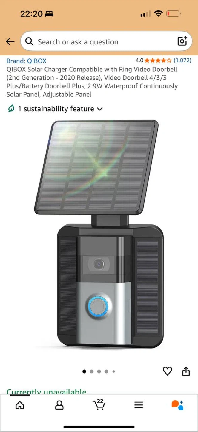 QIBOX Solar Charger Panel for Ring Video Doorbell – Open Box