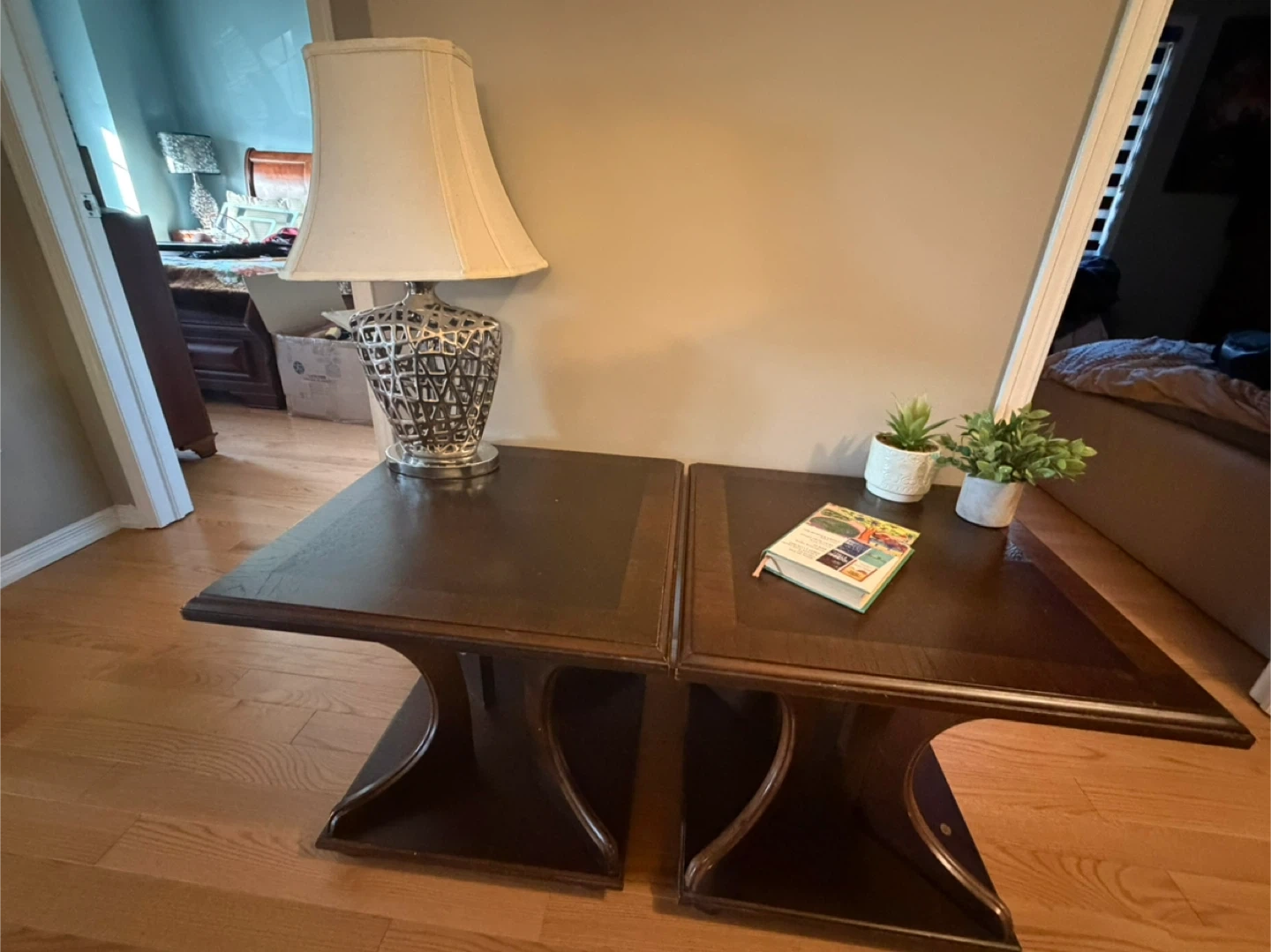 Beautiful solid wood end tables in a rich dark espresso finish. These tables are well-built, heavy, and designed to last – perfect for a living room, bedroom, or staging a home.