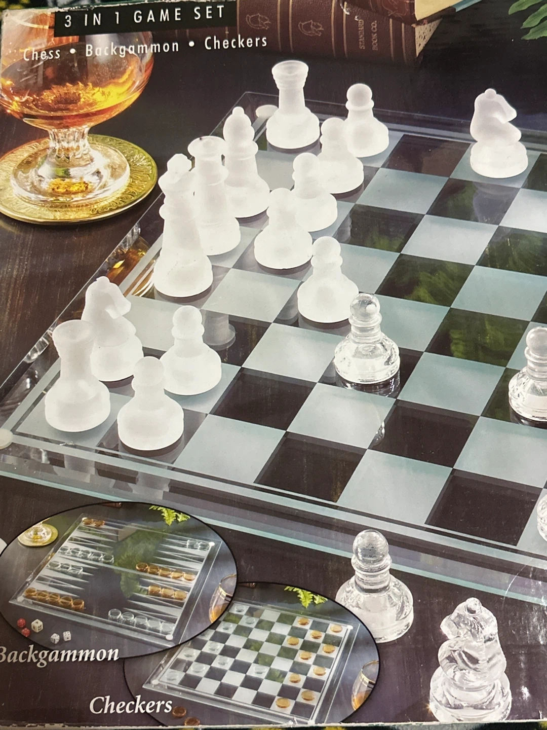 3-in-1 Glass Game Set: Chess, Backgammon, Checkers