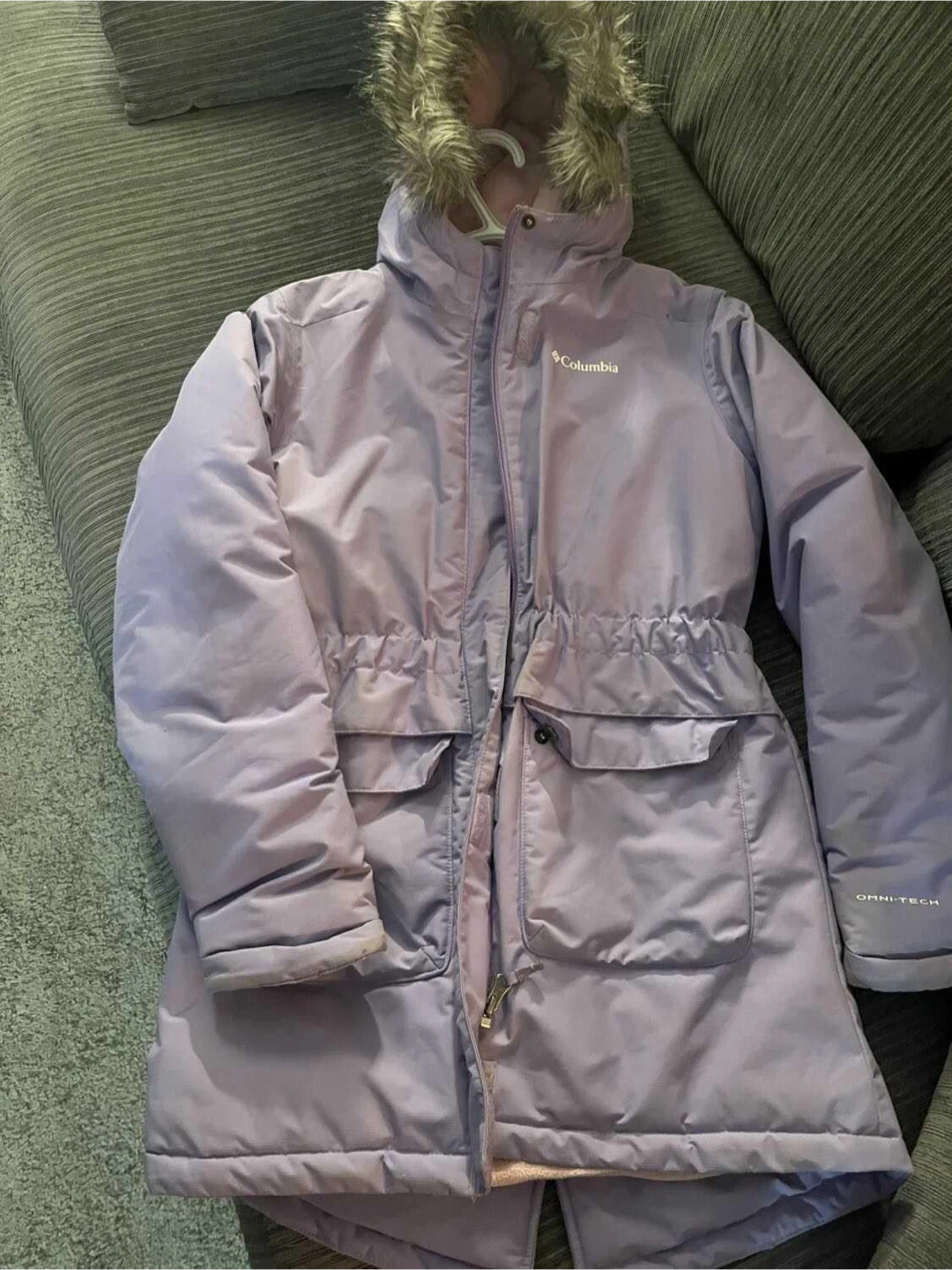 This Columbia girls' insulated winter parka is a great choice for cold weather. It's lavender in colour with a faux-fur trimmed hood. The Omni-Tech fabric provides waterproof and breathable protection. Multiple pockets keep essentials secure.