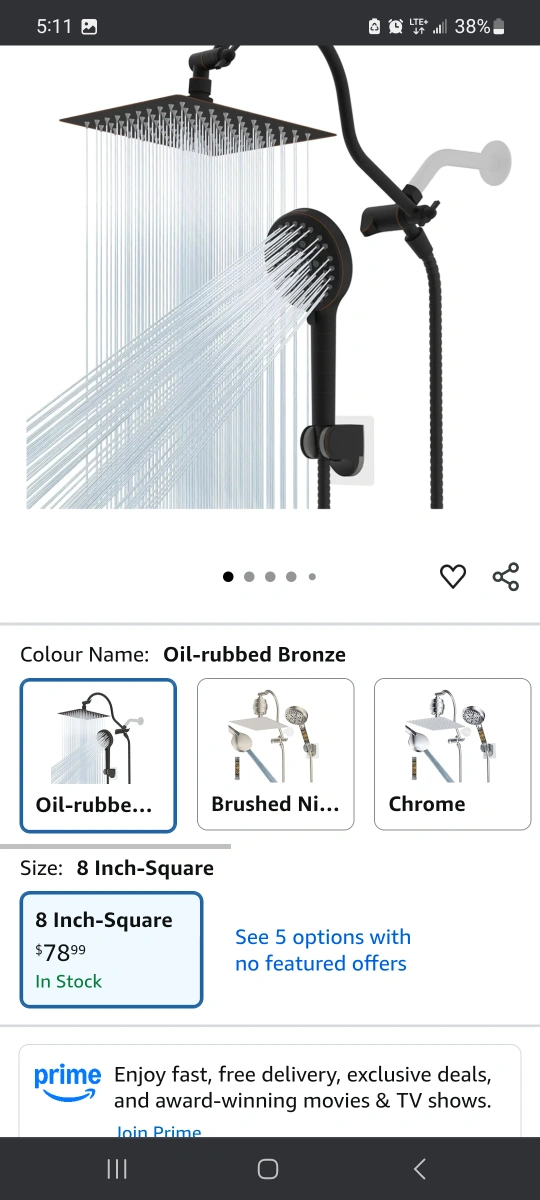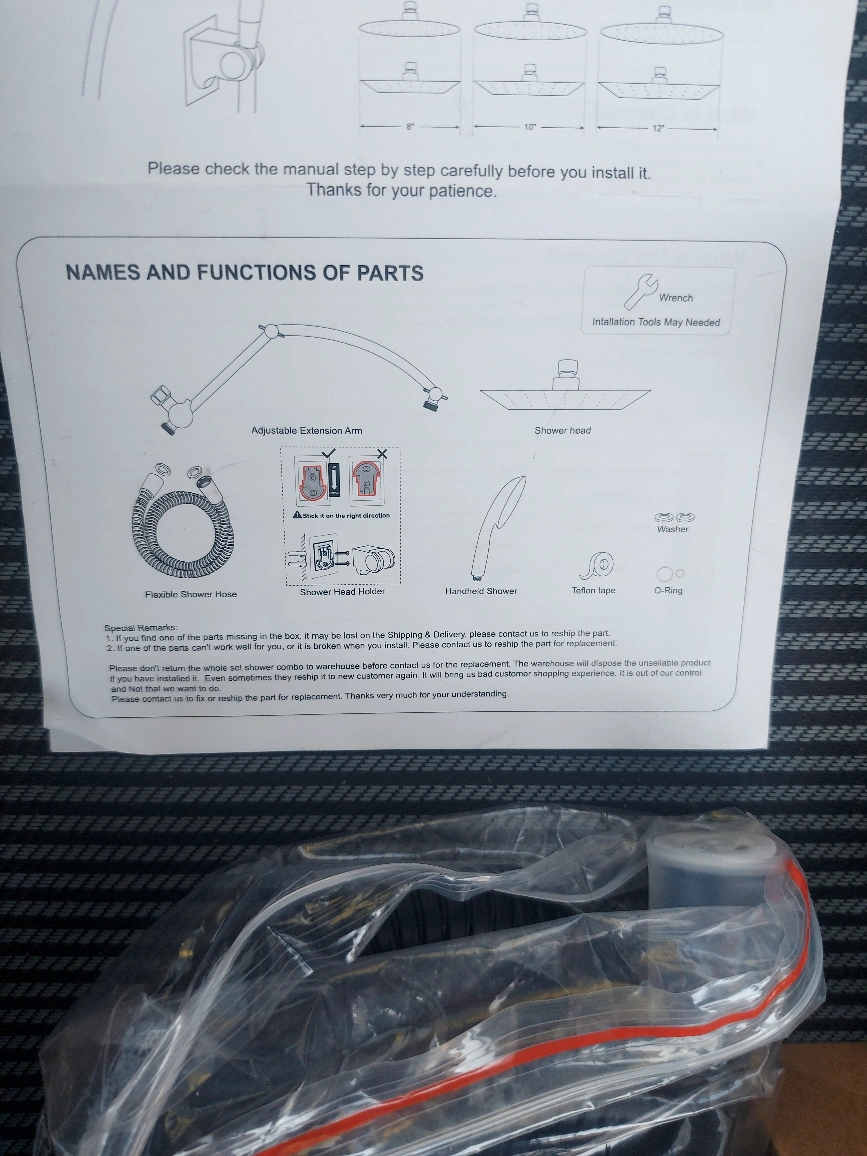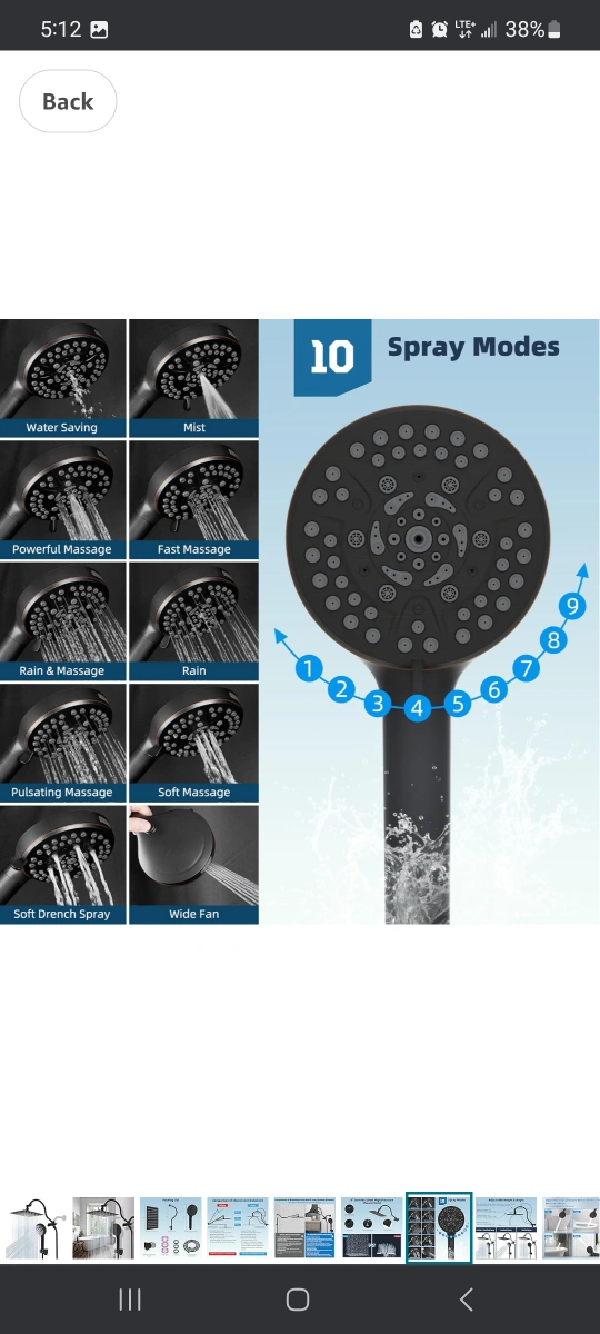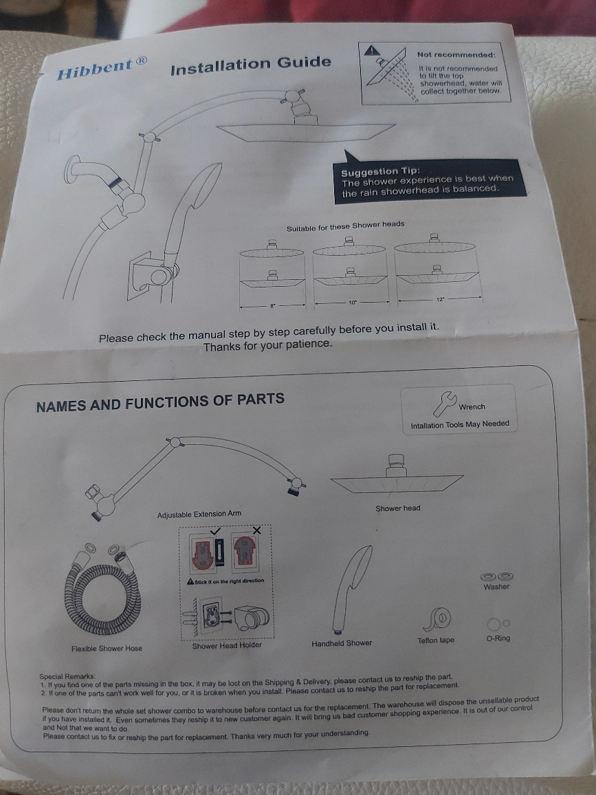 Selling a Hibbent all-metal shower head in oil-rubbed bronze. It's an 8-inch high-pressure rainfall shower head/handheld showerhead combo with a 12-inch adjustable curved shower extension arm. It also features a 10-spray setting and a 71-inch hose. All components are included! open box new