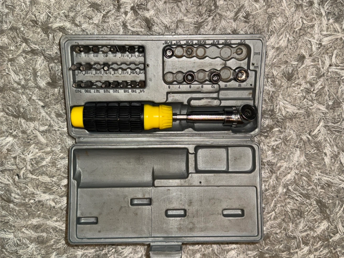 • Some bit sockets included (flathead, Phillips, maybe Torx/hex)