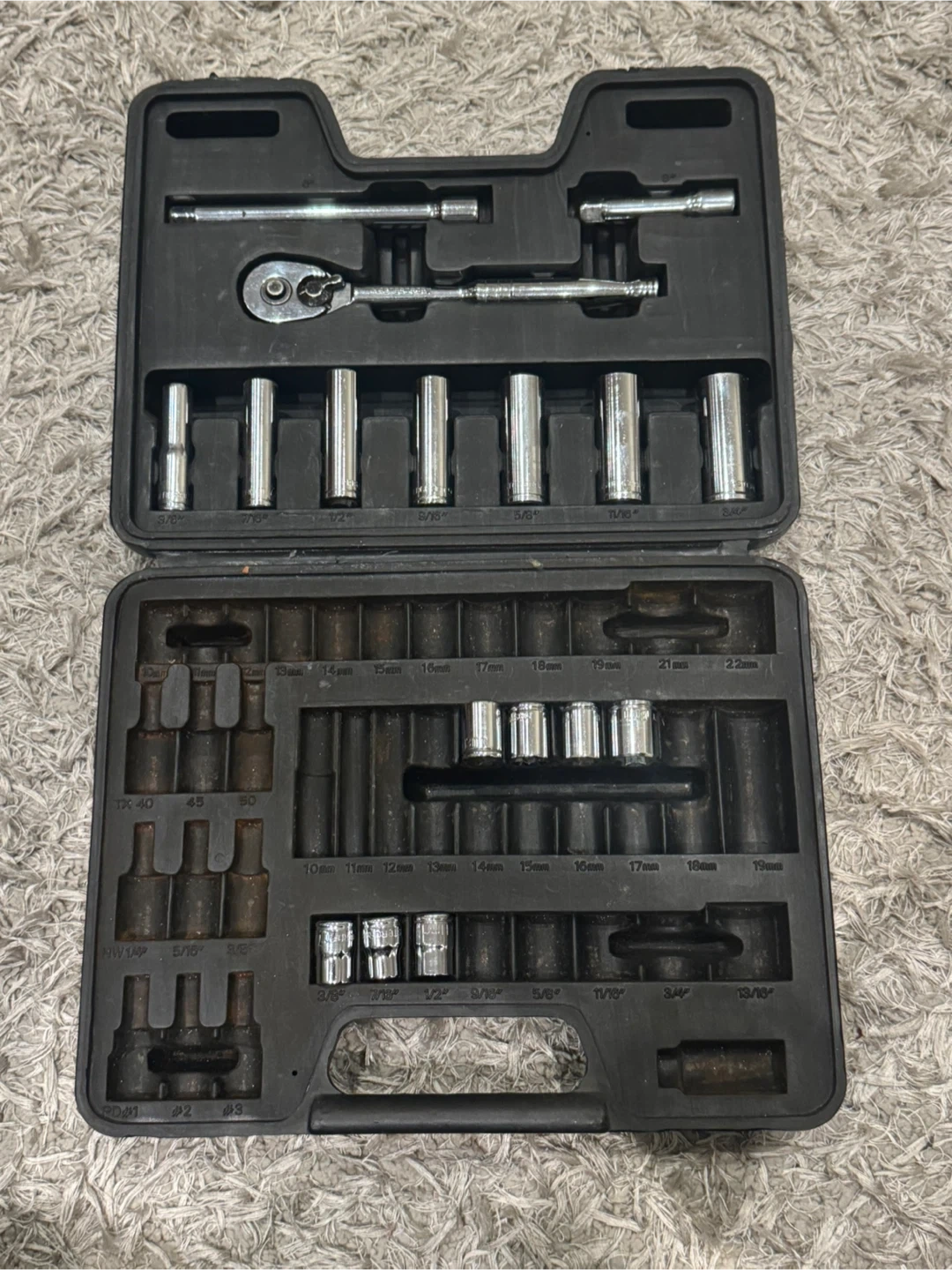 • 50-piece set (SAE & Metric, 1/4” & 3/8” drive)