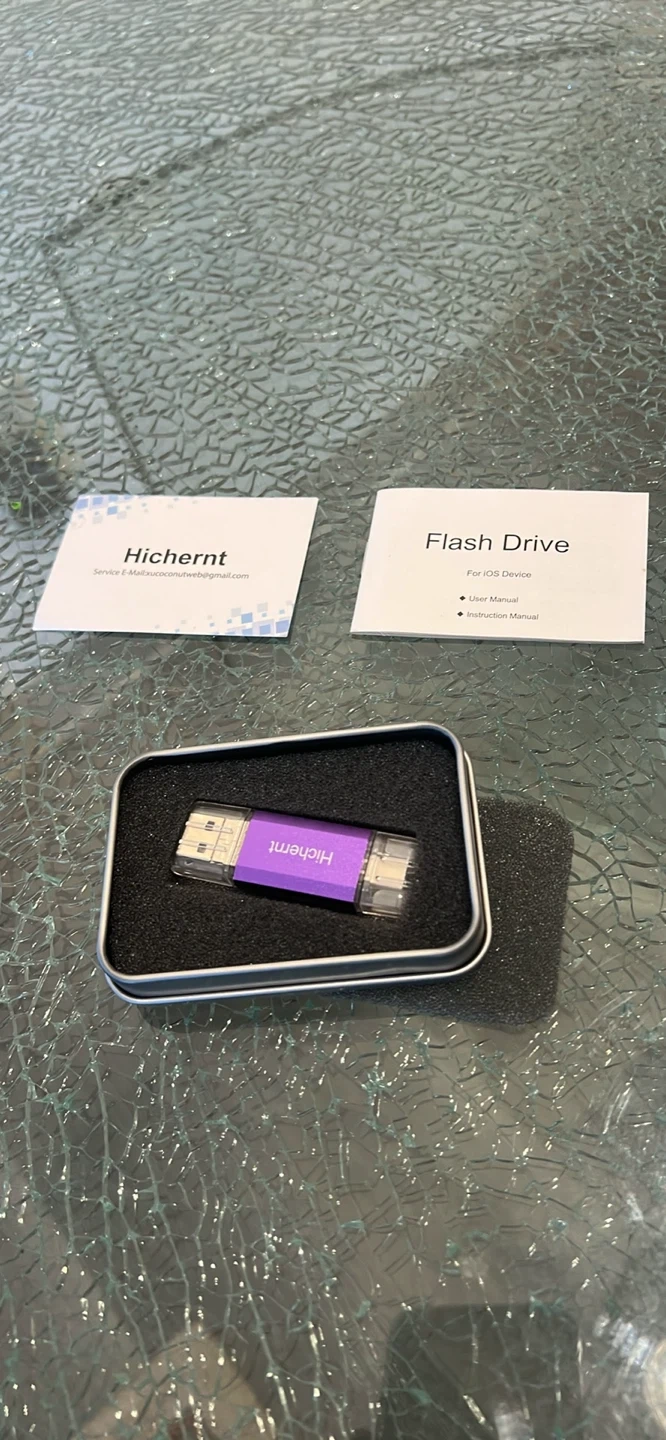 75Selling a Hichern flash drive for iOS devices. It comes with a user manual and instruction manual. The flash drive is in excellent condition and comes in its original box