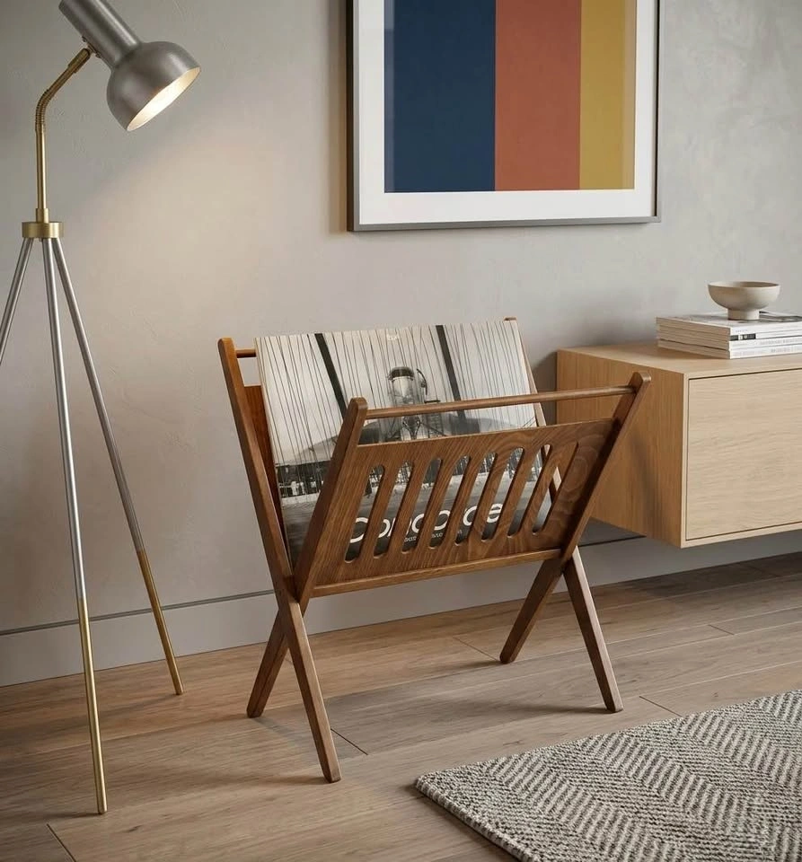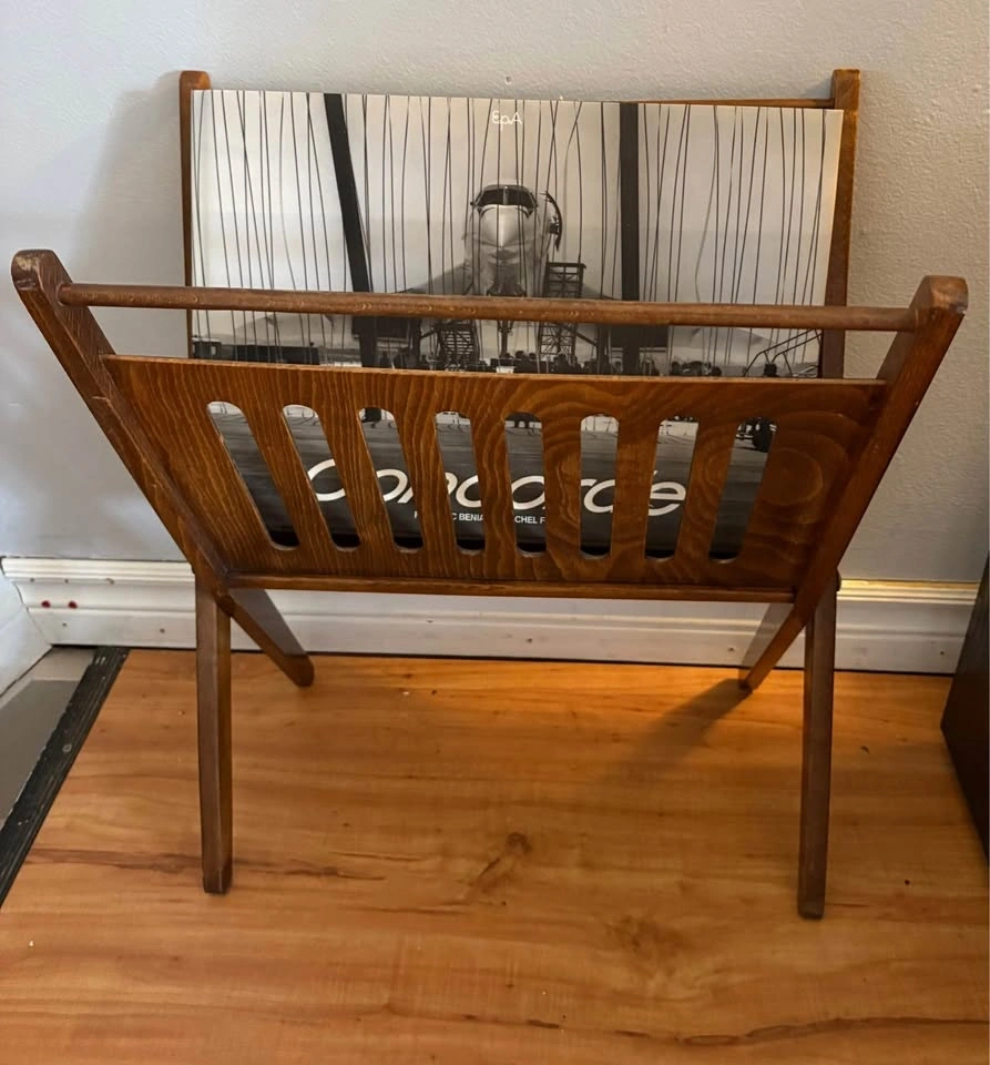 Vintage Mid-Century Modern Folding Magazine Rack, frequently attributed to Dutch designer Cees Braakman or identified as being in his style. (Made in Romania.) A beautiful addition to your space. It’s in remarkable condition! Approximately 20” H x 16” W. Pickup only in Burlington (Pinedale Ave). Firm at $70.