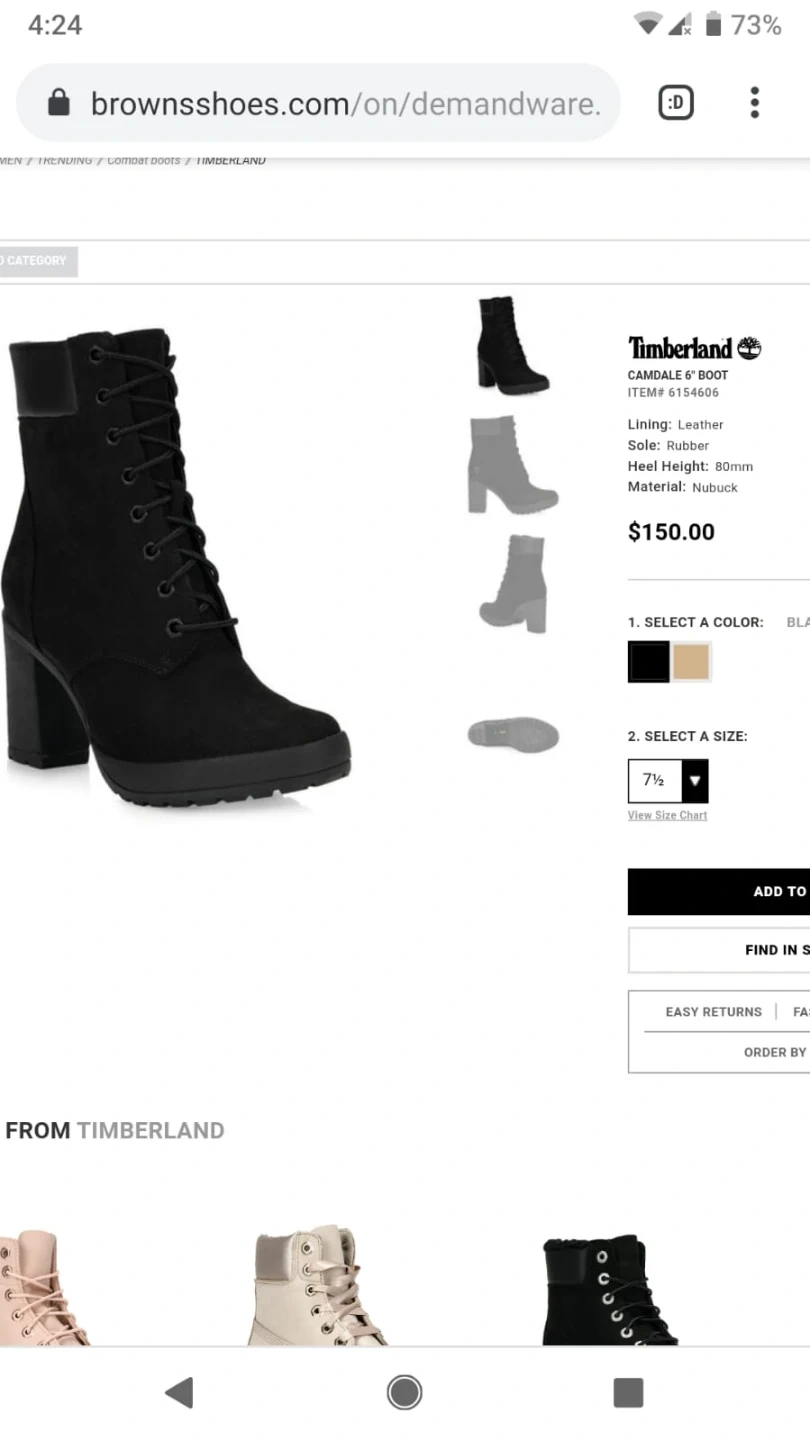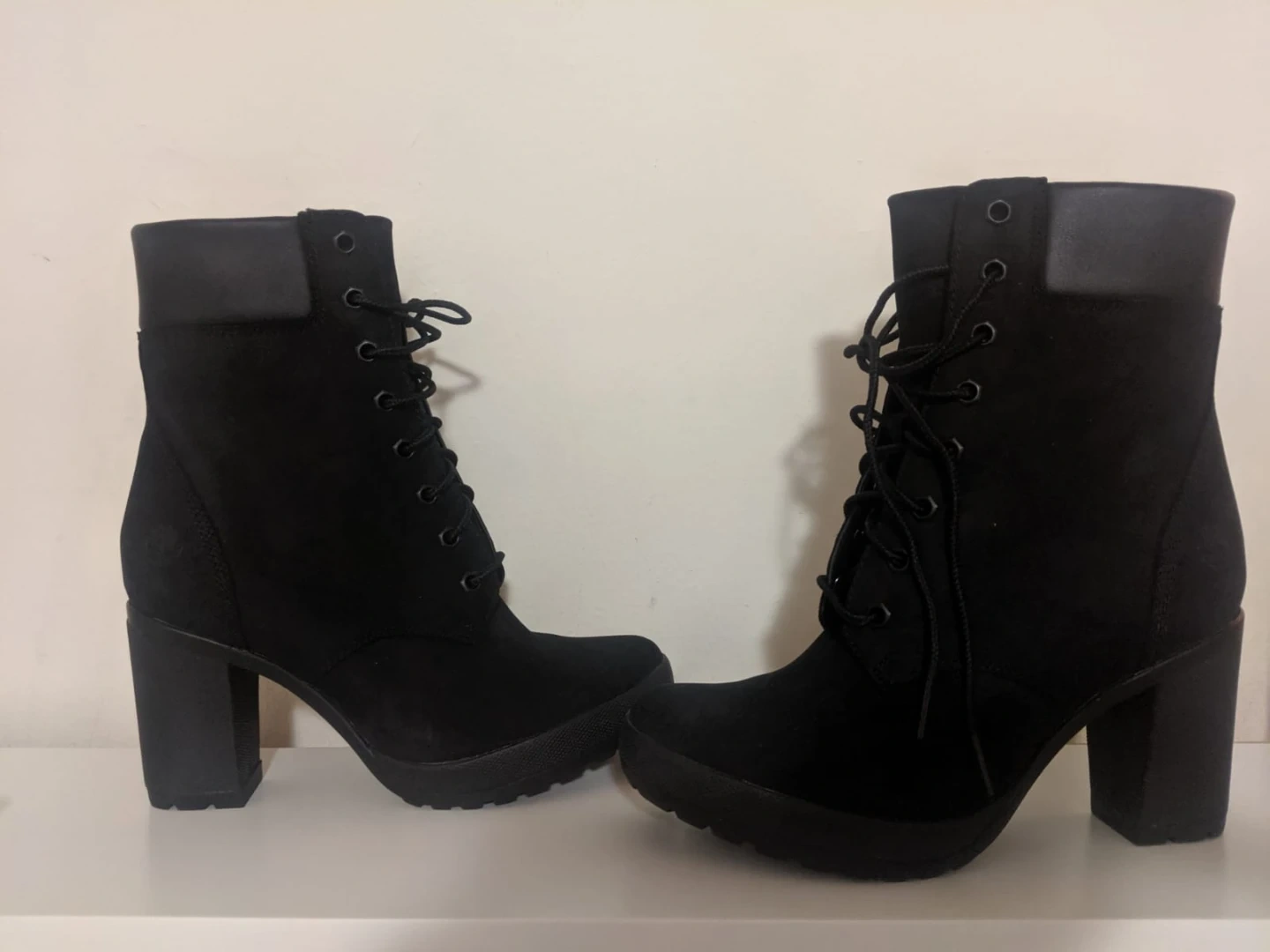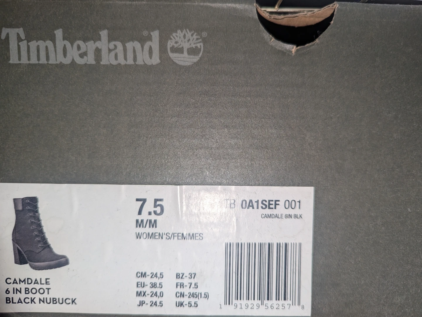 Selling a pair of women's Timberland Camdale boots in black nubuck, size 7.5. These boots feature a heel height of 80mm. They're in great condition and ready for a new home. The box is included! Negotiable! Original price paid was $150 plus tax. Can meet in Toronto. A few minor marks from being stored away.