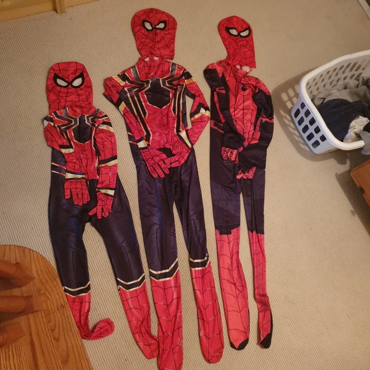 68Selling a lot of three Spiderman costumes! Sizes vary, perfect for siblings or friends who love Spiderman and want to dress up. They're in great condition and ready for a new home! smaller size - for 45-48" kids 2 bigger size - for 57-60" kids Originally $40 for each. Asking $50 for all three