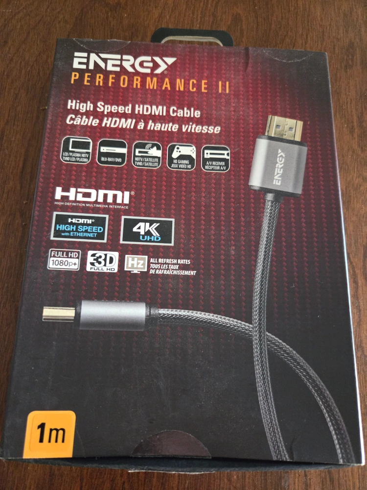 Selling a new Energy Performance II High Speed HDMI Cable. It's 1m in length and supports 4K UHD, Full HD 1080p+, and 3D. Perfect for connecting your devices!