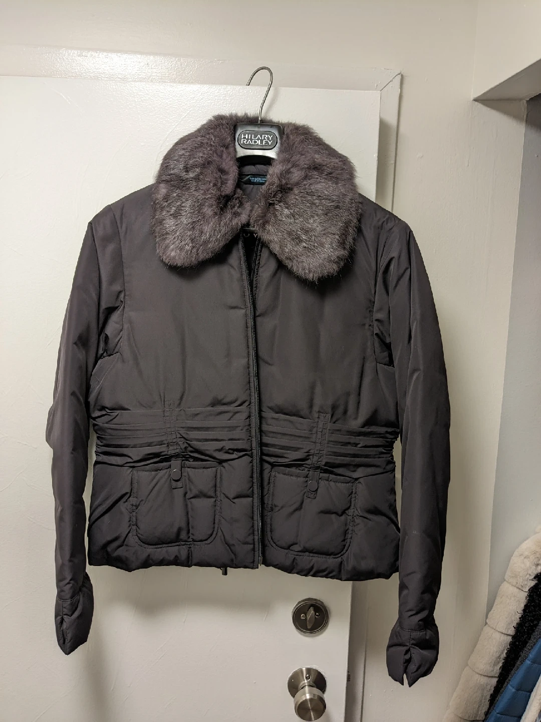 12Selling a never worn Hilary Radley winter coat in size large. It's a lovely plum colour with a fur-trimmed collar. The model is called 'Duvet'. It's in great condition and ready to keep you warm this winter!