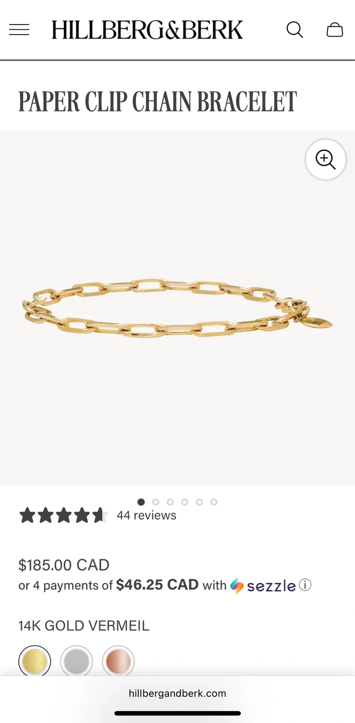 Hillberg & Berk paper clip chain bracelet in gold. It's in great condition and has a small round charm. Originally bought for $185 Crafted in with 14k vermeil this piece brings a refined edge to any outfit with its sleek, brushed metal links. The minimalist paper clip design is sophisticated yet understated, making it ideal for stacking or wearing solo. Adjustable to fit comfortably on any wrist, this bracelet has a lightweight feel that holds every look together with style and ease—a true wardrobe essential. Materials: recycled .925 sterling silver or 14k gold/rose gold-vermeil sterling silver Closure: Lobster clasp with Hillberg & Berk monogram Length: 8 inches, adjustable Link Size: 5mm x 11mm
