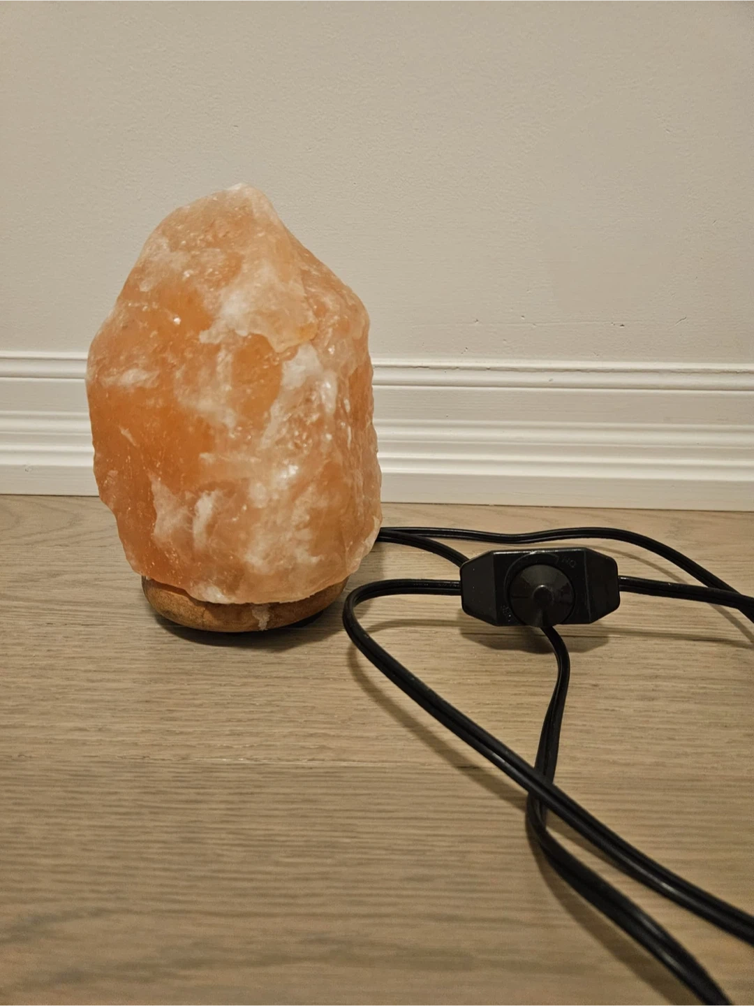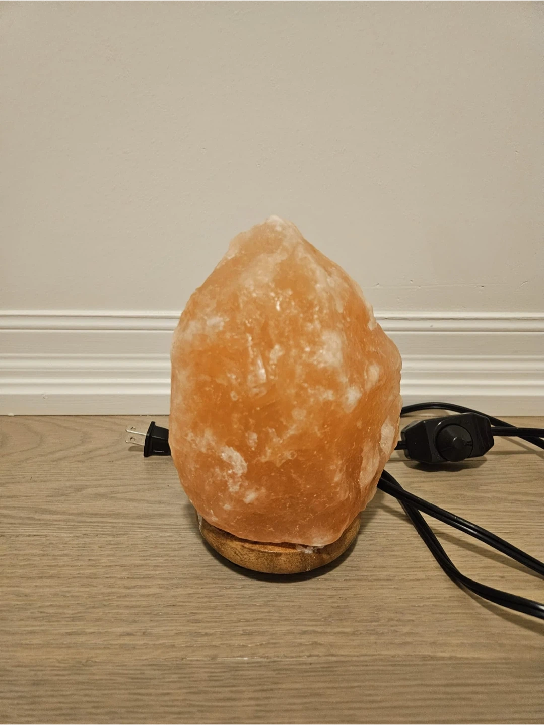 Selling a Himalayan salt lamp. It's in great condition and adds a warm glow to any room! It comes with a dimmer switch so you can adjust the brightness to your liking. Perfect for creating a relaxing atmosphere in your home