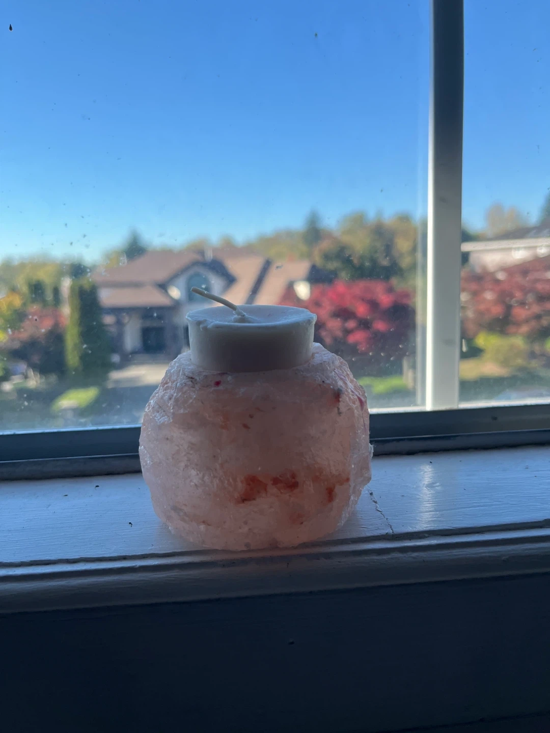 65A lovely pink salt candle holder! It's in great condition and ready to add a warm glow to your space. Perfect for creating a cozy atmosphere in any room. It's gently used with a few light scratches but still perfectly functional and provides a gentle and soothing vibe for meditation, yoga or sleep.