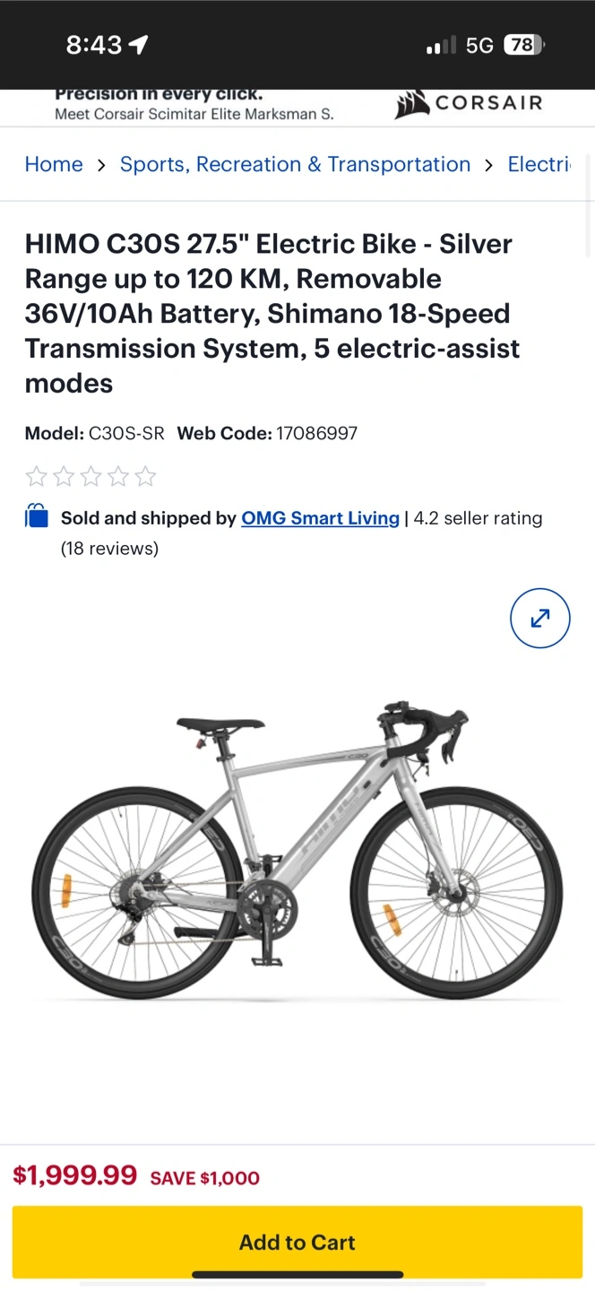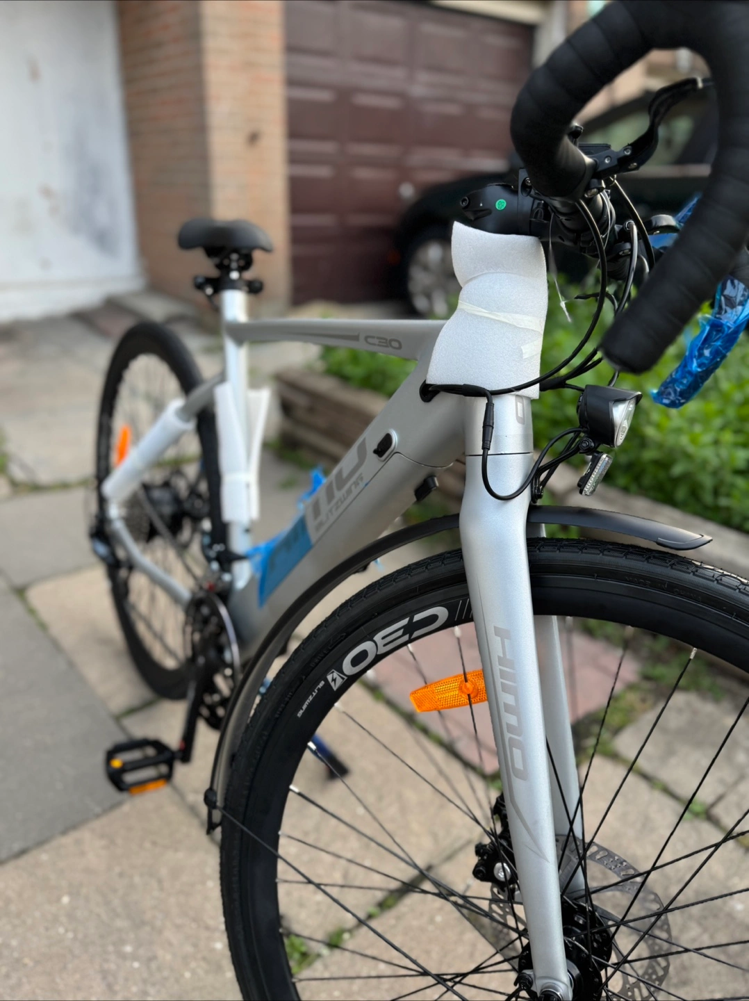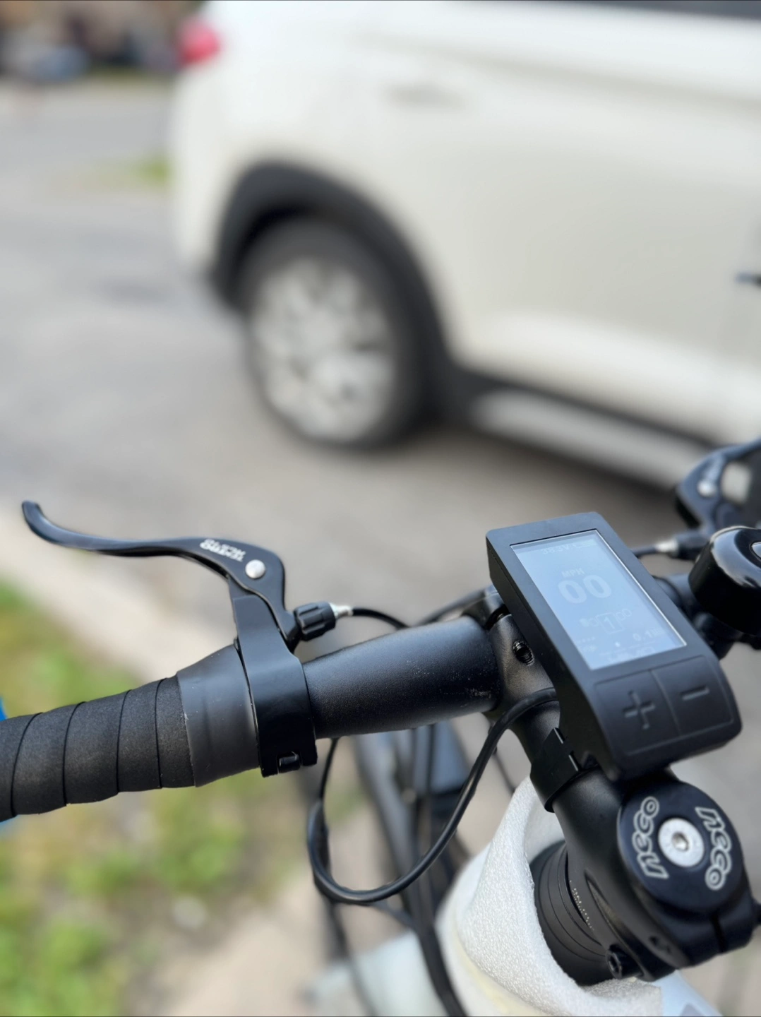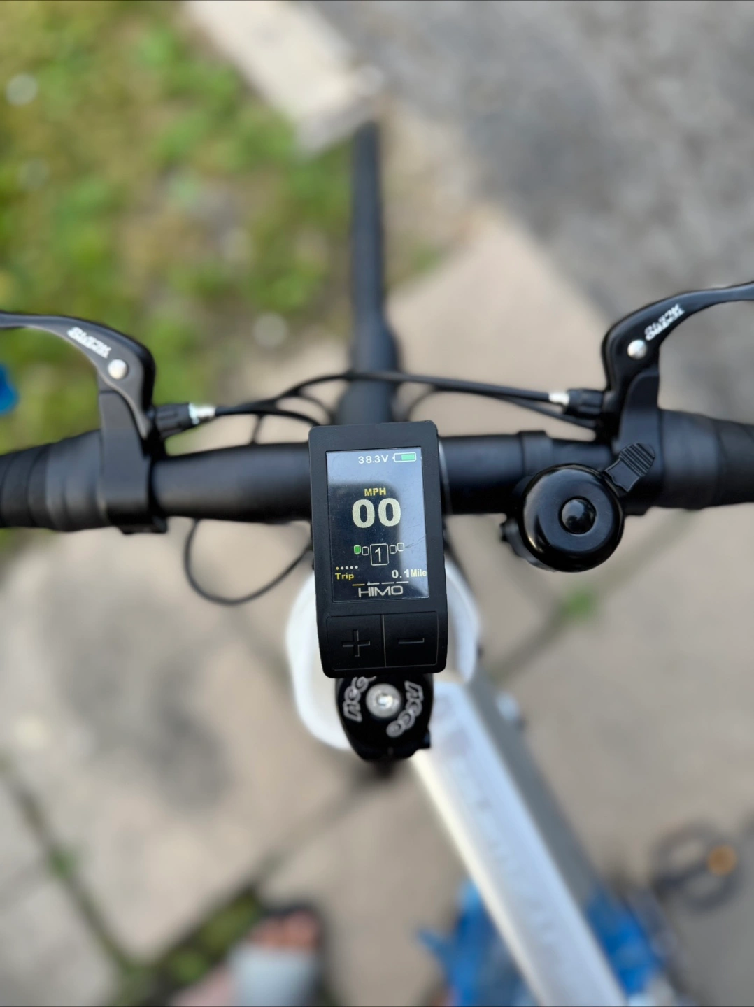 Selling a HIMO C30 Blitzwing e-bike! It's in great condition and ready for some fun rides. The bike features a display showing speed and battery level. Perfect for getting around town or enjoying a leisurely ride in the park!