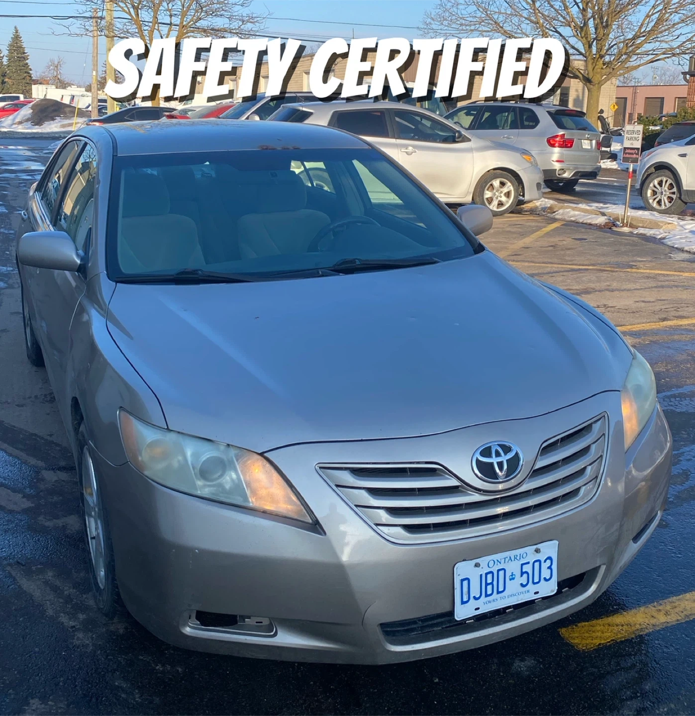 This is a gold Toyota Camry sedan. It's been safety certified and has 273,775 km on it. It runs well and is ready for a new owner.