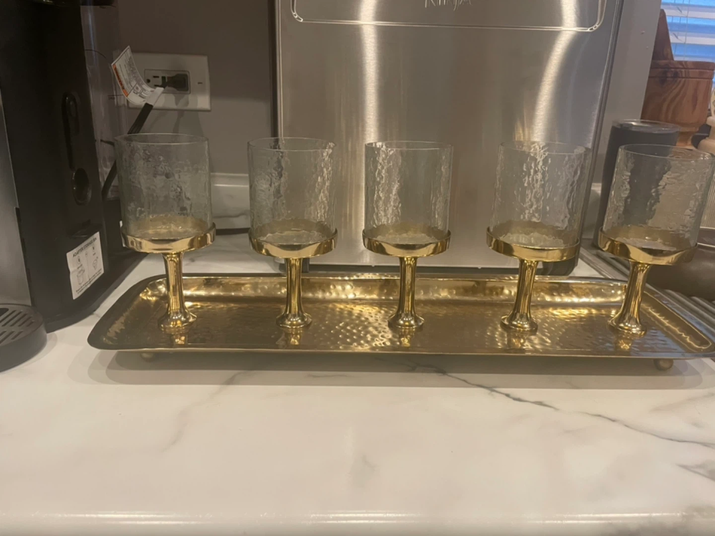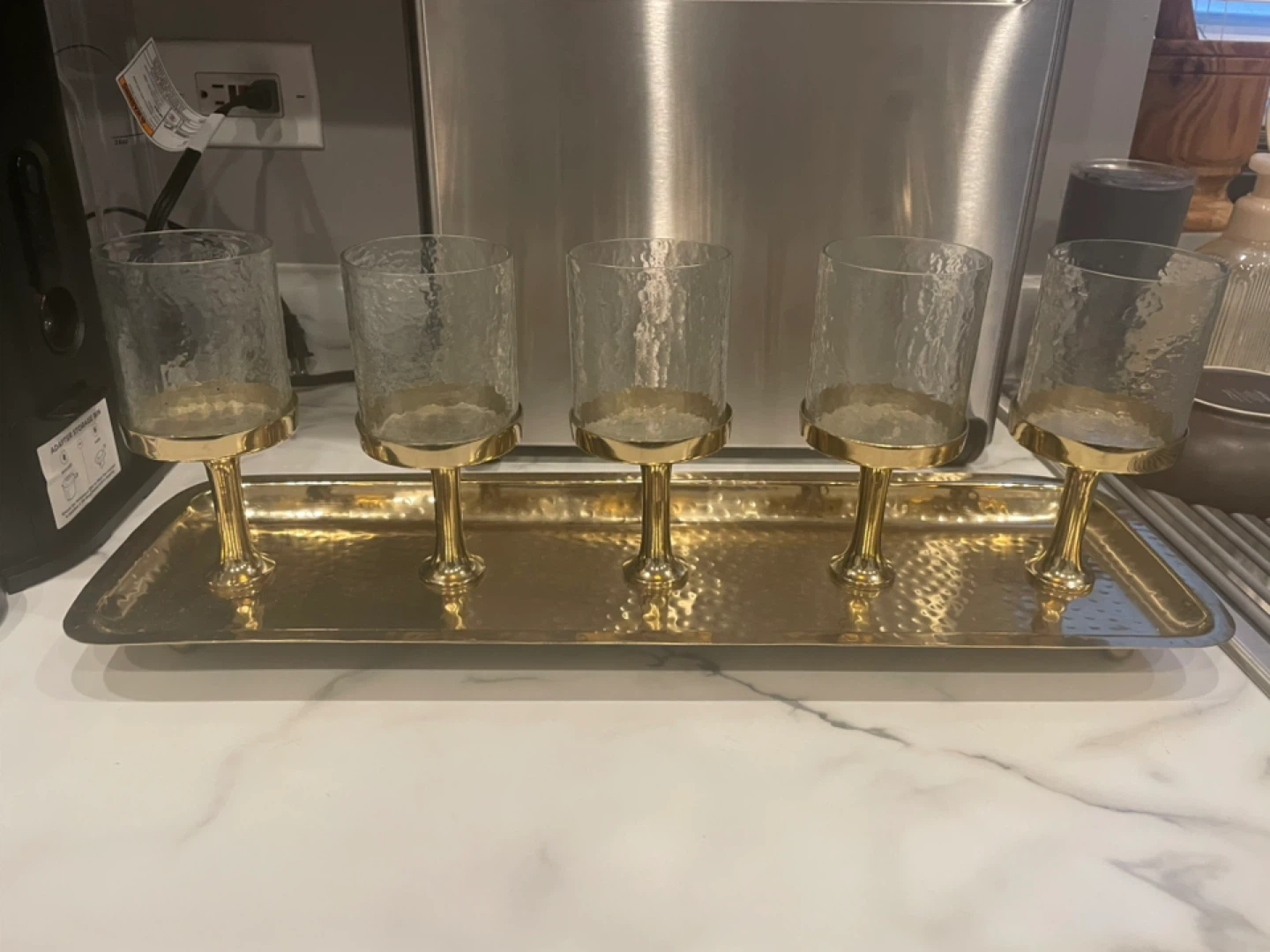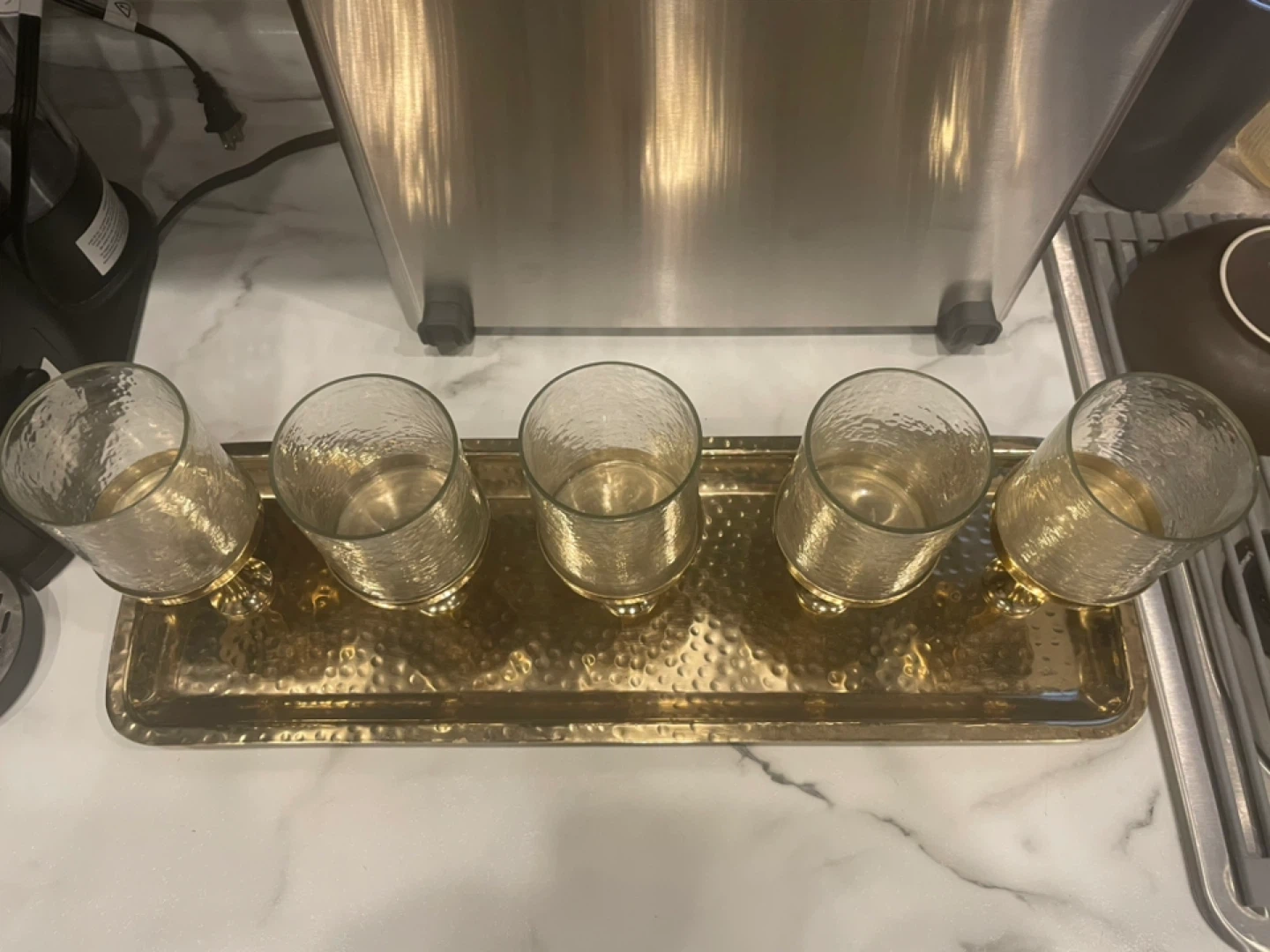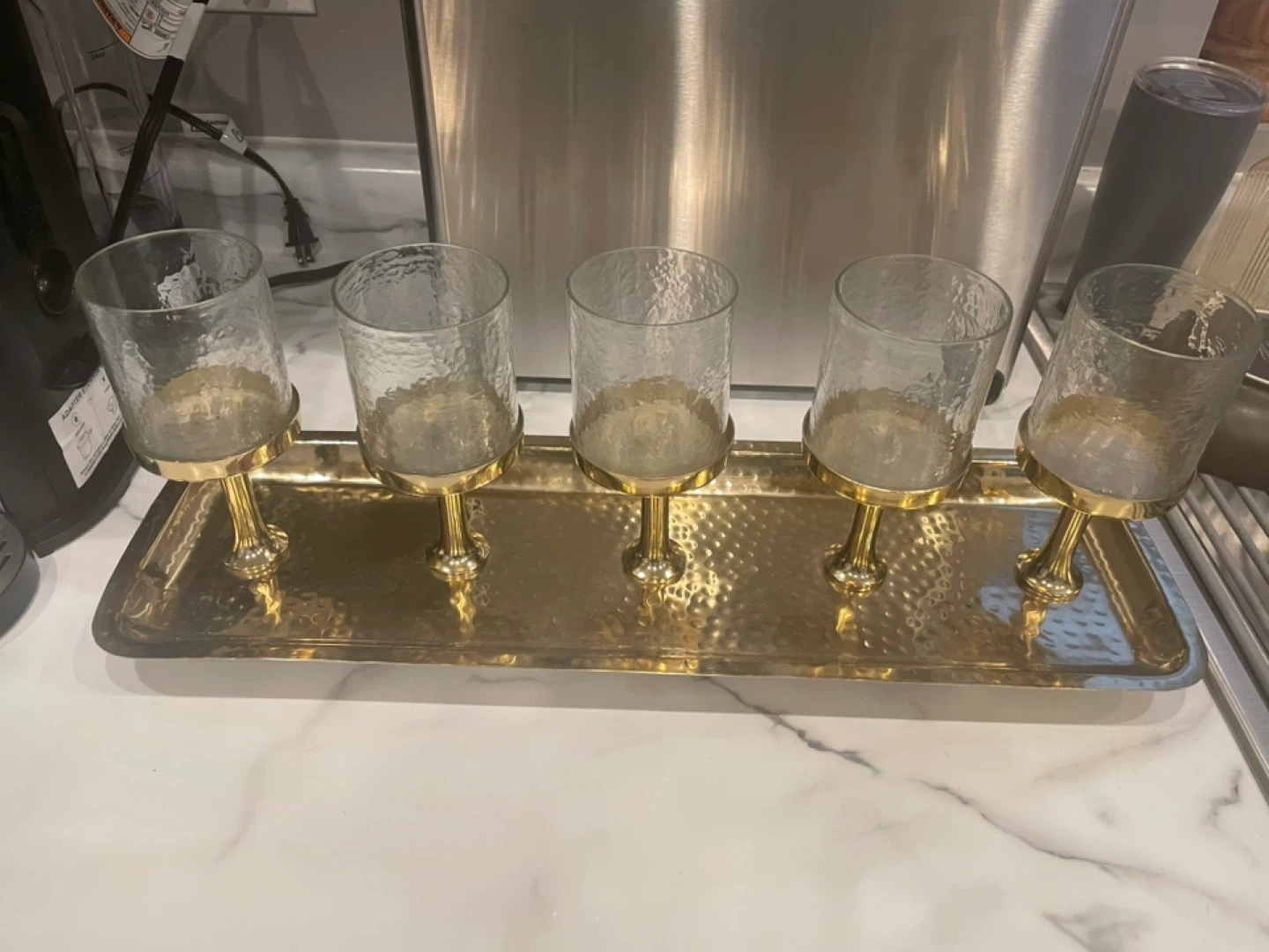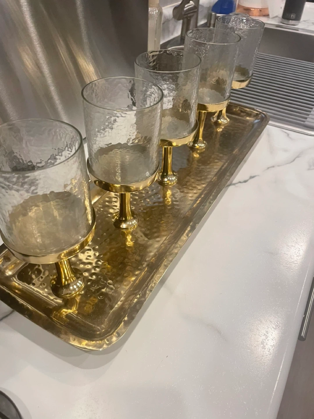 Gold Tray with 5 Hammered Glass Votive Holders