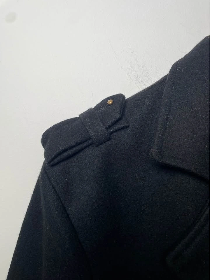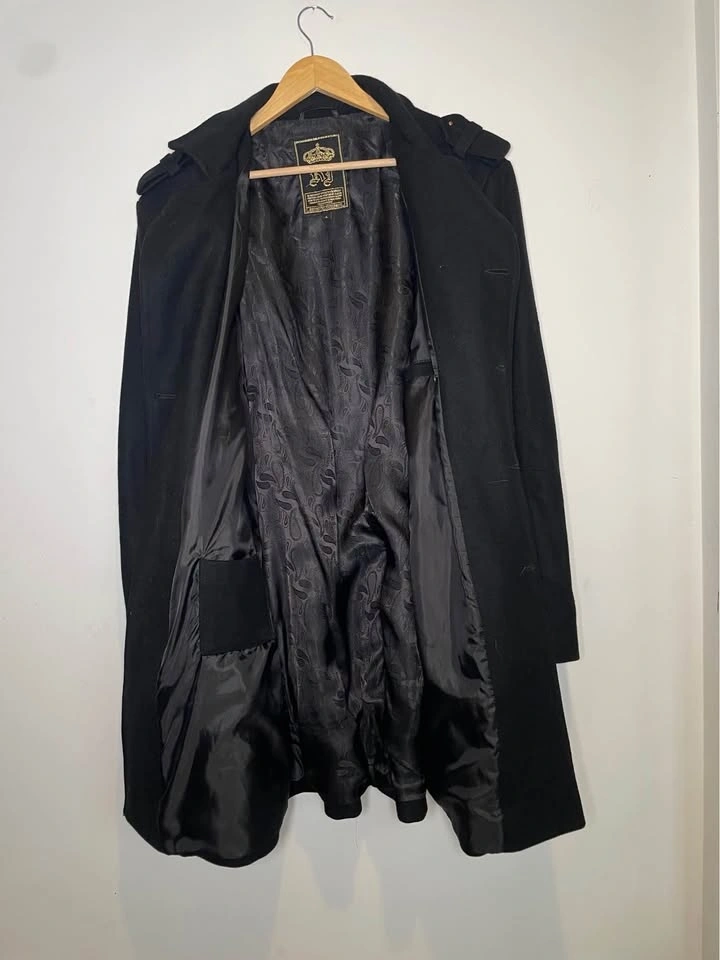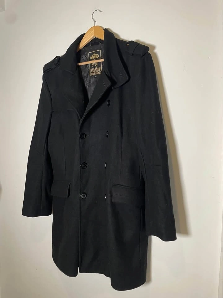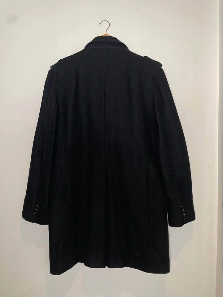 Selling a sharp RJ wool-blend coat in excellent condition. This is a heavy, structured piece with a great "rock-inspired" military aesthetic. Features a double-breasted front with crested metallic buttons and shoulder epaulettes. The interior has a signature charcoal paisley lining. Like new, no pilling or wear on the wool. Perfect for a dressed-up look that still has some edge. Pickup in Toronto.