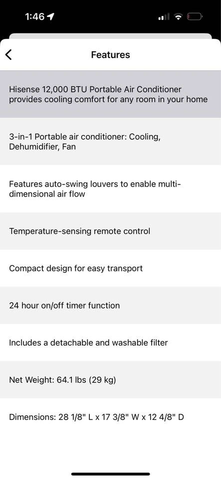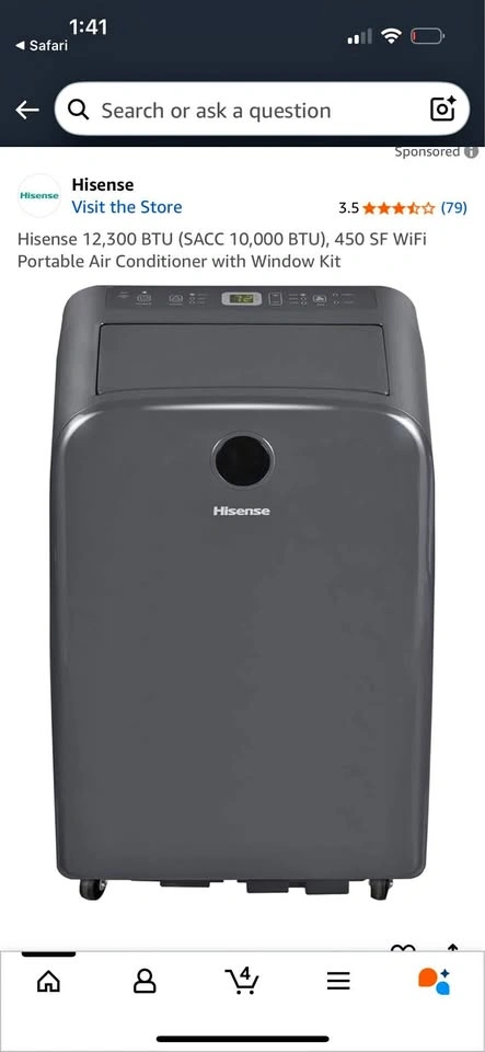 Stay cool and comfortable with the Hisense 3-in-1 portable air conditioner. It features a powerful fan and dehumidifier to stave off the heat and moisture in the air while cooling a room up to 450 square feet in size.
