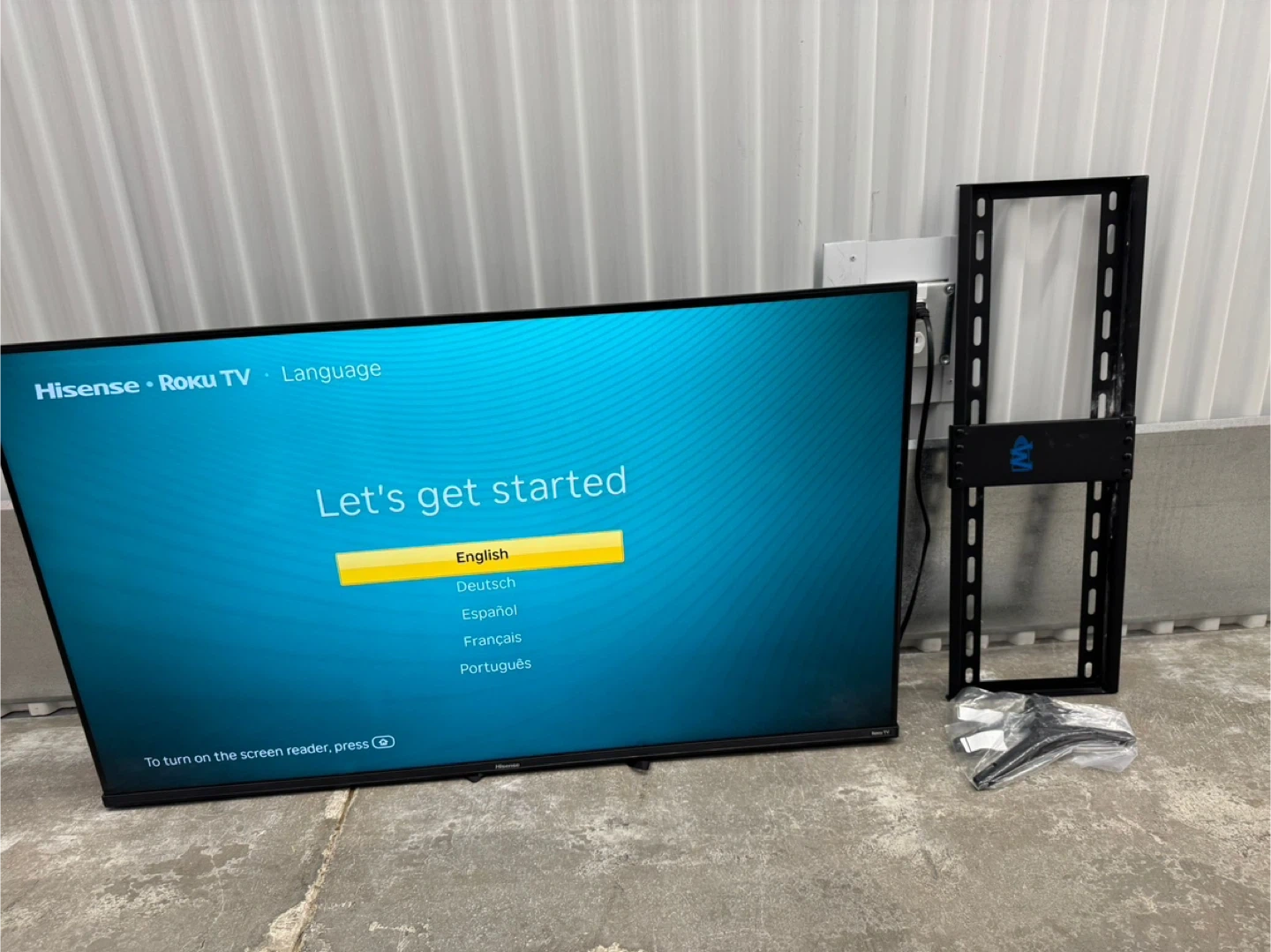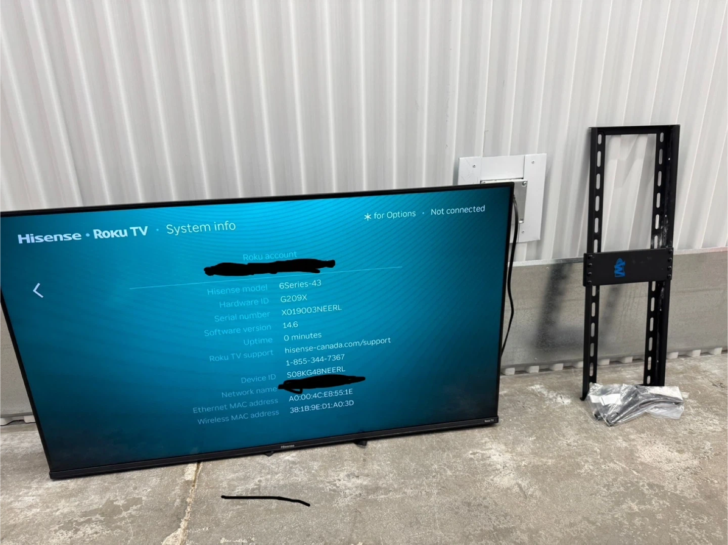 Selling a Hisense Roku TV, 43 inch screen. It's a 6-Series model. Includes the wall mount and screws.