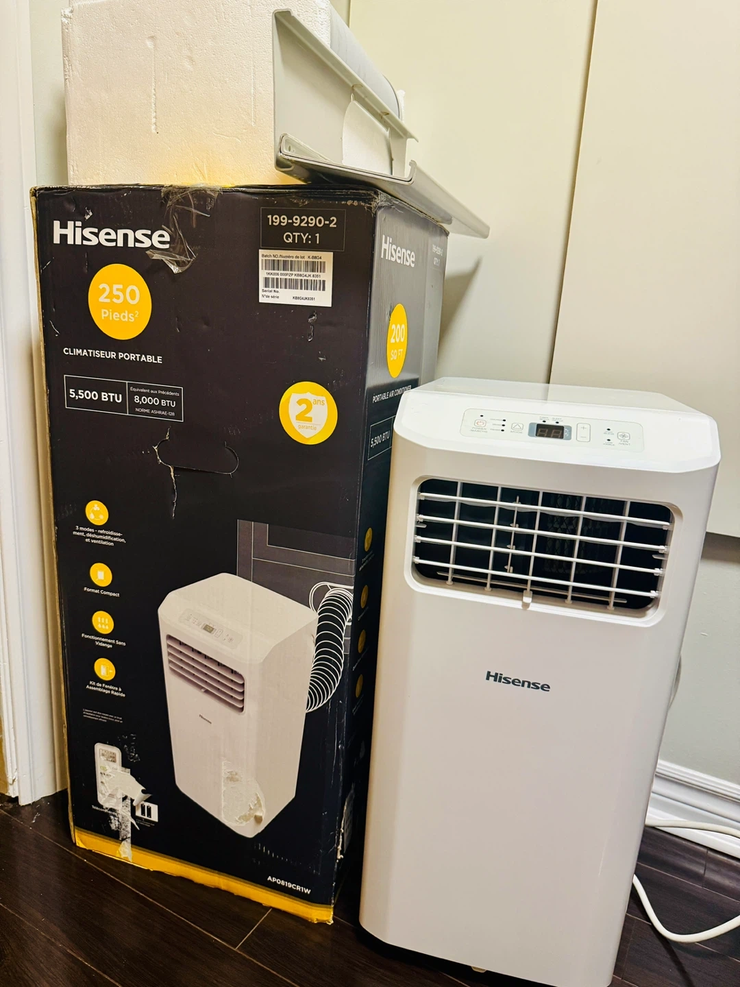 70Selling a Hisense portable air conditioner. It's in great condition and comes with the box and all components. This unit is perfect for cooling spaces up to 250 square feet and has a cooling capacity of 5,500 BTU. It's a compact and convenient way to stay cool! “Lightly used for one season. Delivers powerful cooling, bringing an average room to a comfortable temperature within 5 minutes.”