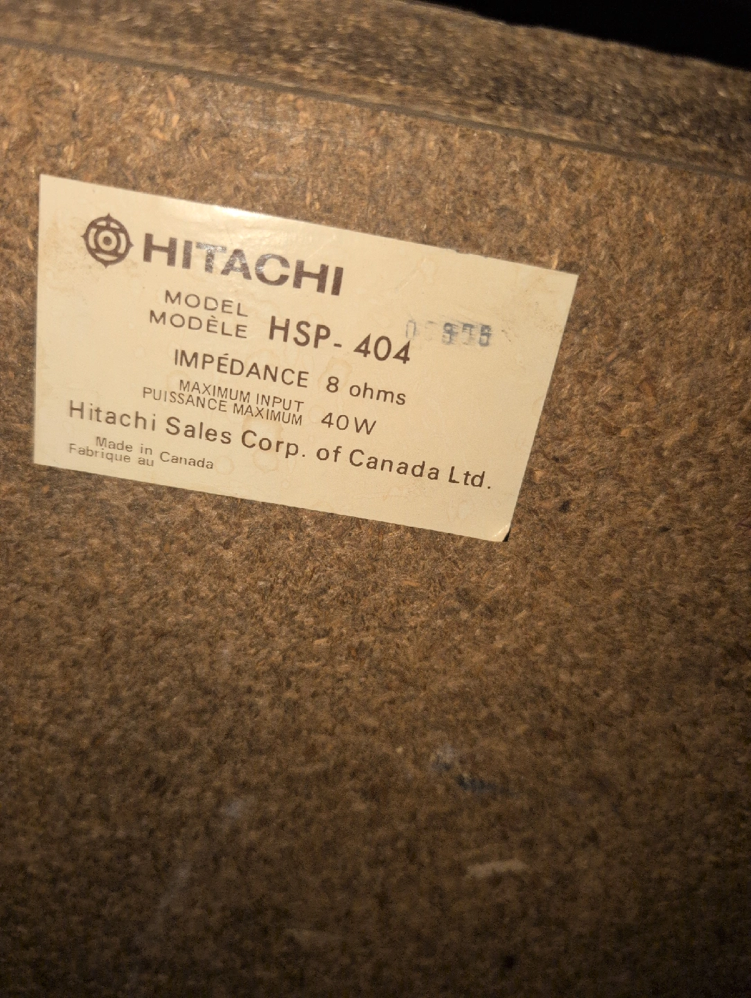 140Selling a pair of Hitachi HSP-404 speakers. They have an impedance of 8 ohms and a maximum input of 40W. Great for someone looking for a vintage sound system!