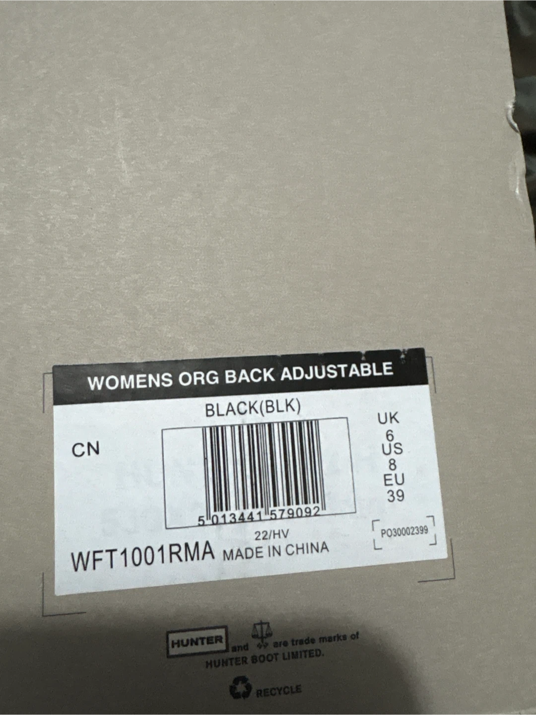 Selling a pair of Hunter Women's ORG Back Adjustable rain boots in black, size US 8. These are in great condition and come with the original box!