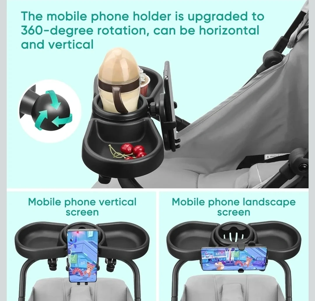 Universal Stroller Snack Tray with Cup Holder & Phone Mount