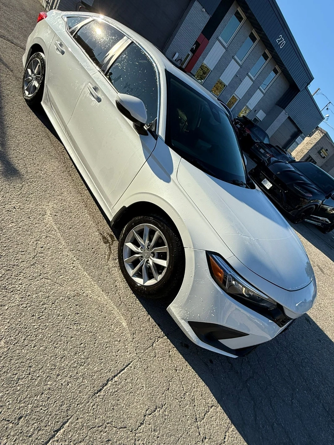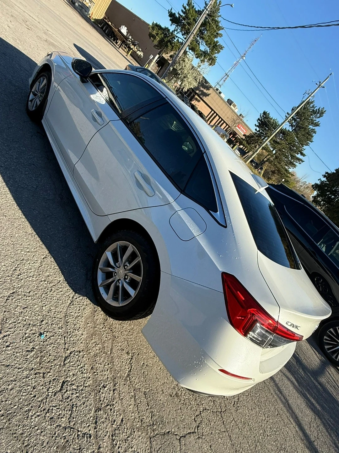 This is a white Honda Civic sedan. It features a modern interior with a touchscreen infotainment system and comfortable seating. It's a reliable and stylish vehicle for everyday driving.