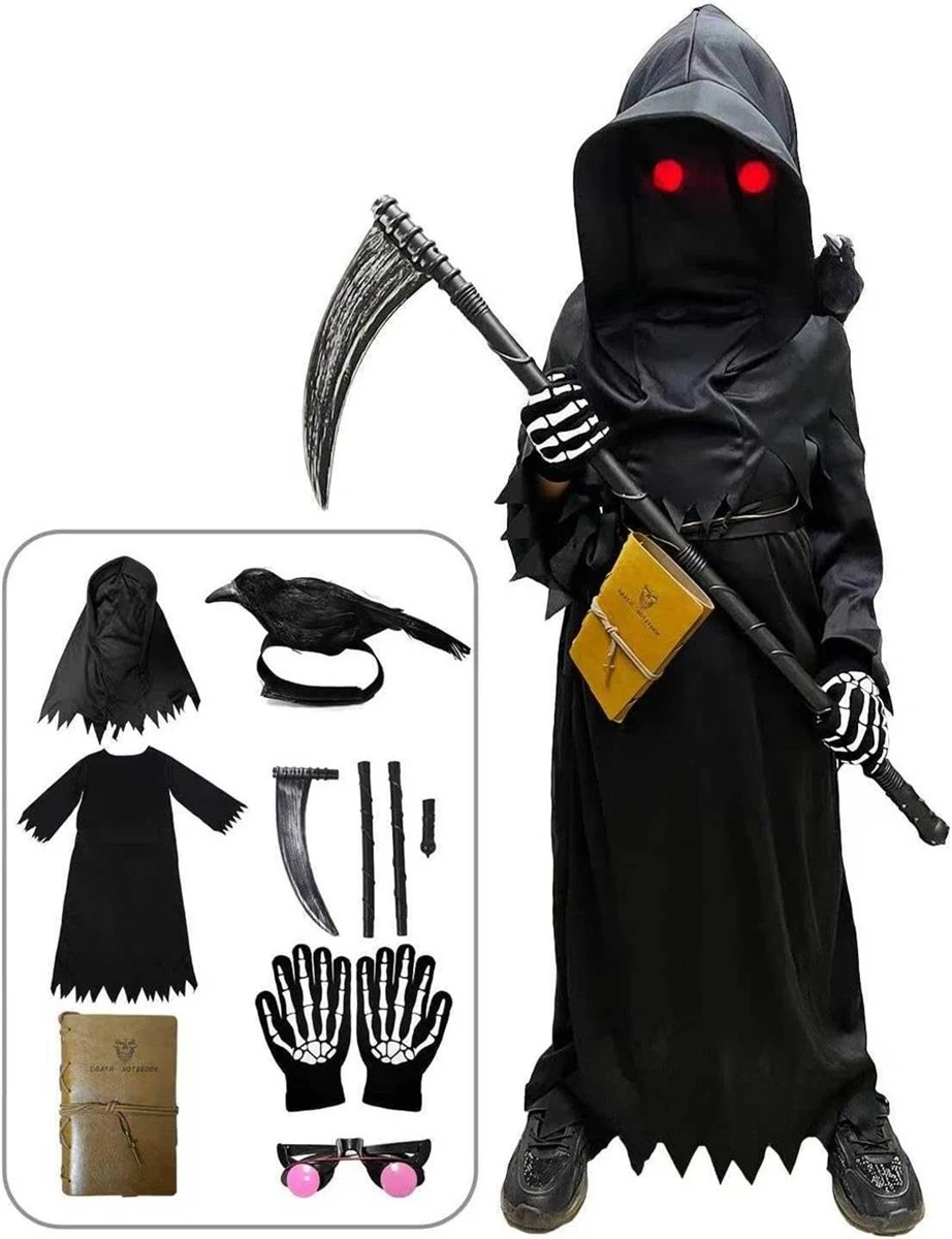 Kids Grim Reaper Costume Set with Scythe and Accessories