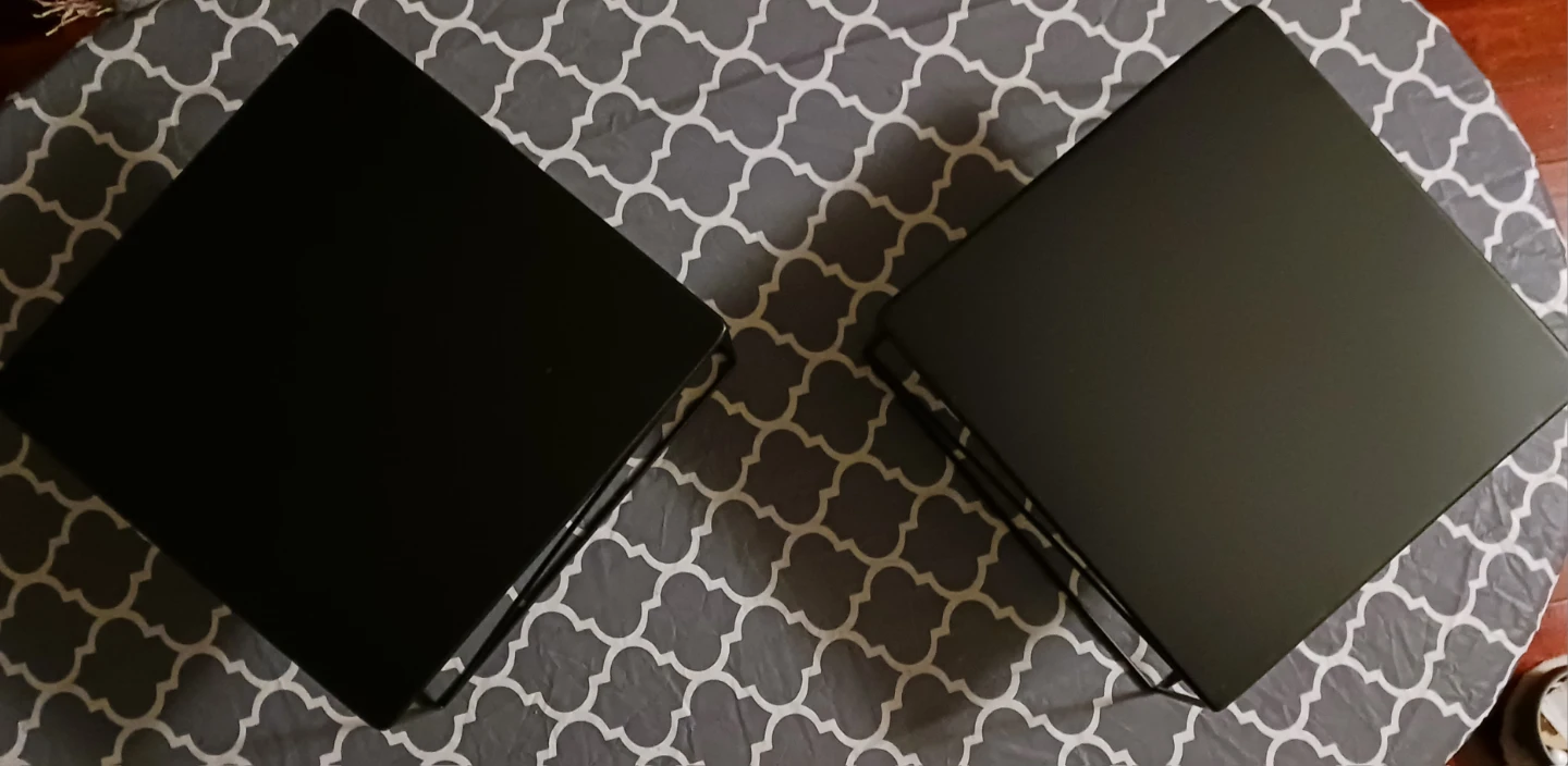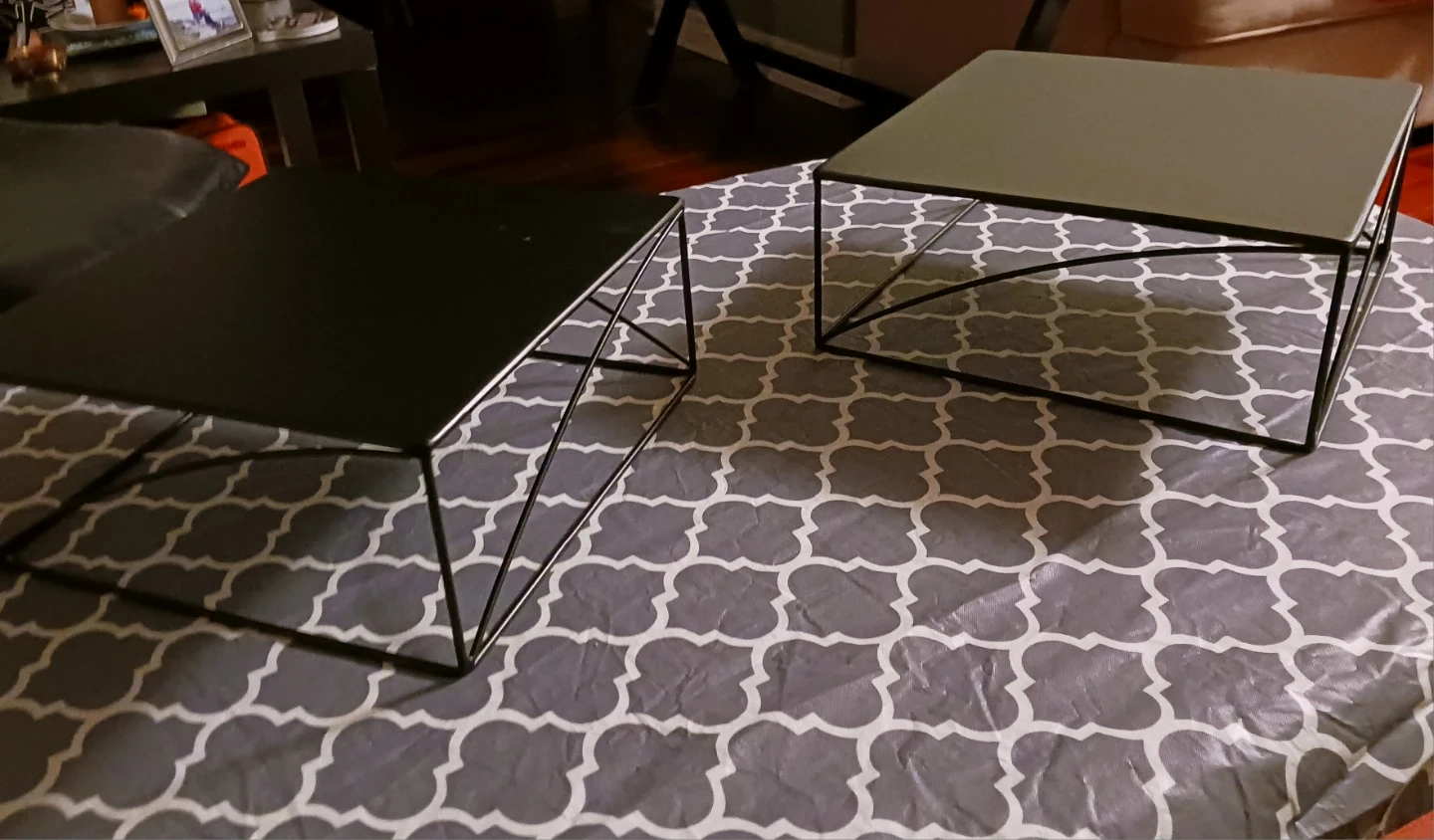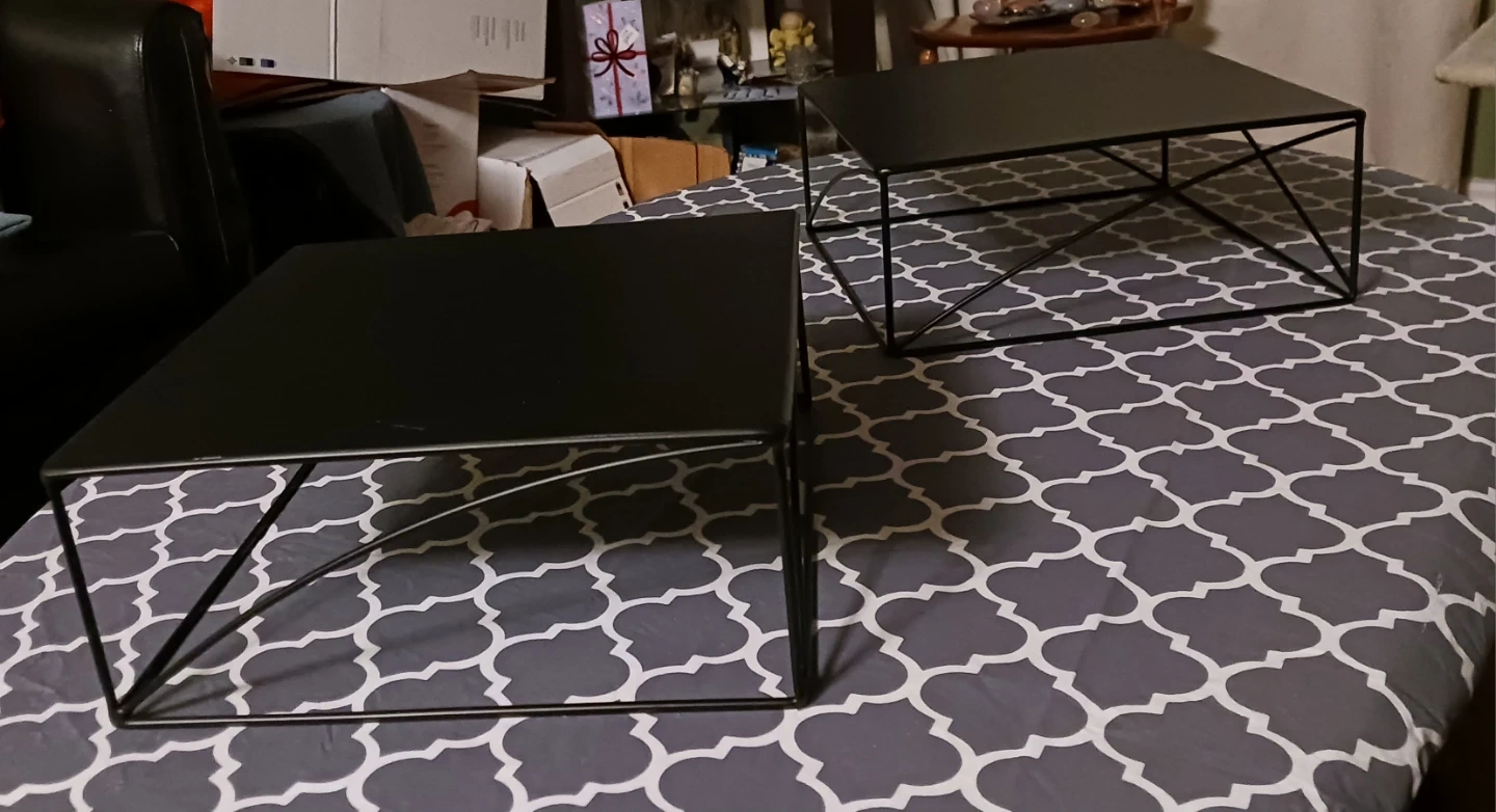 Two black square display stands with metal frames. These are for cake or cupcakes or other things you would like to display.