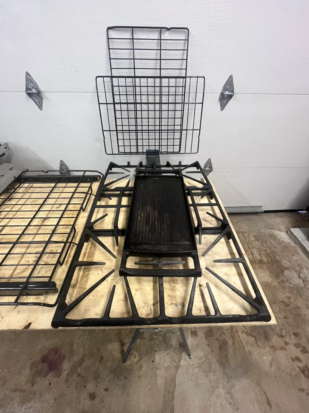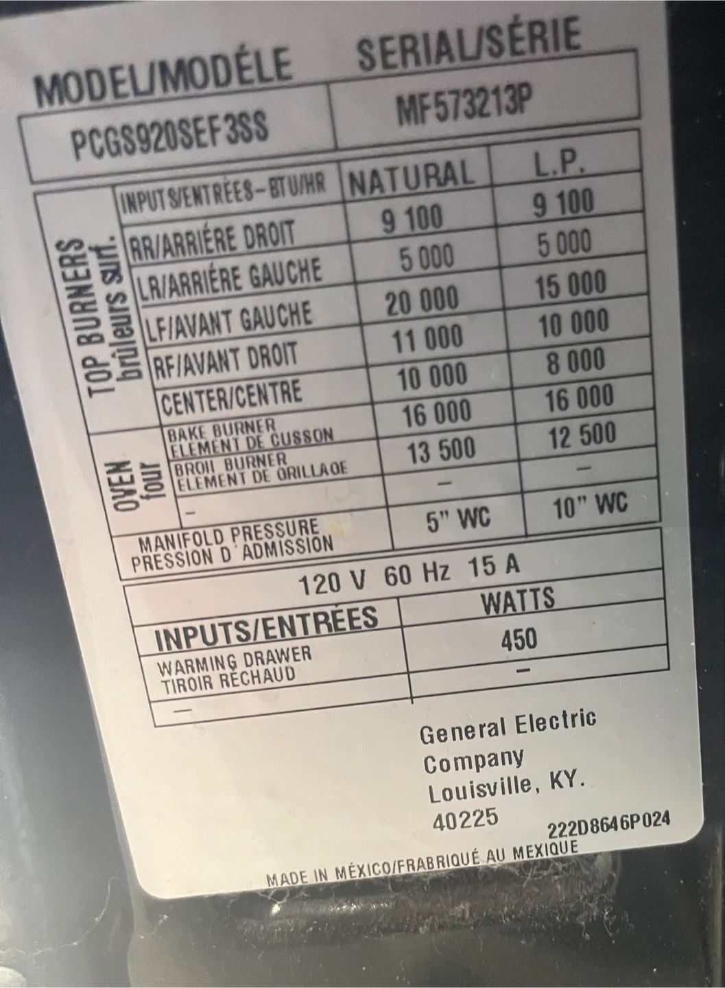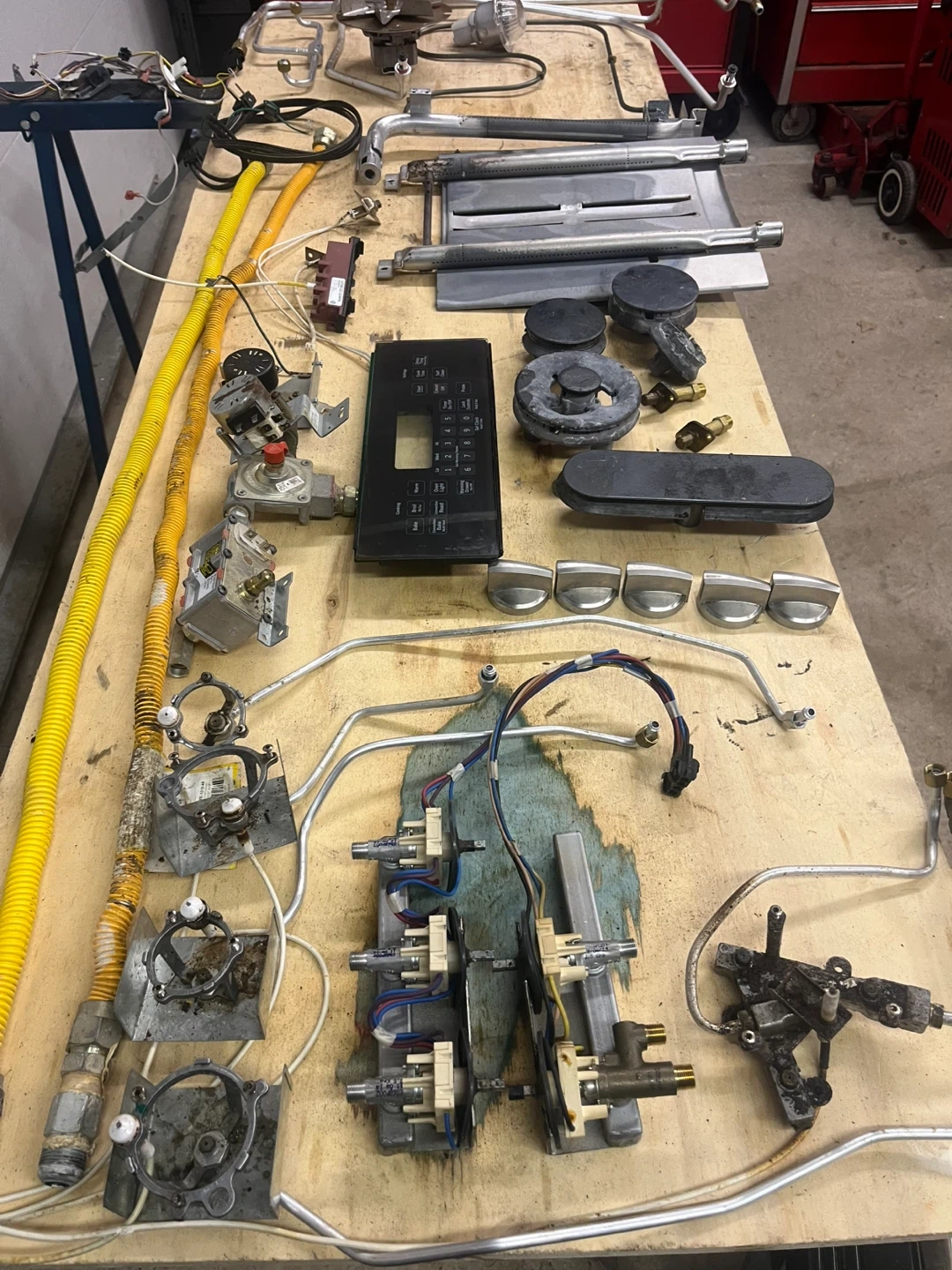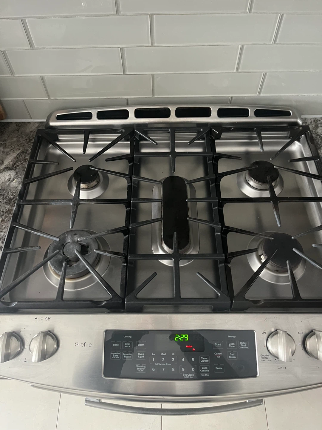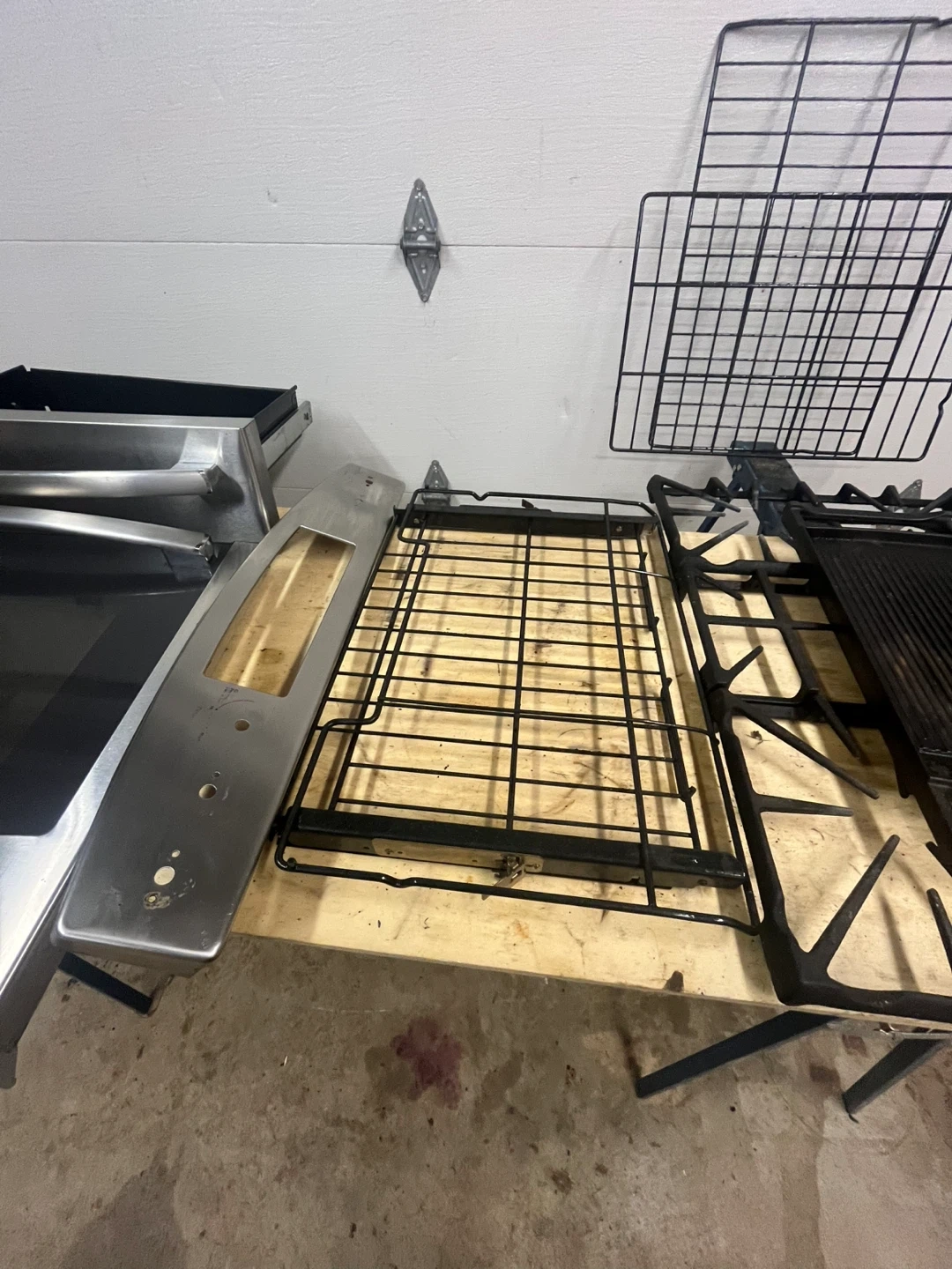 Parts for a GE Profile gas range. Please verify model number shown in photos. Please look at parts and contact me to see what you need. Willing to sell individually or $100 takes everything.