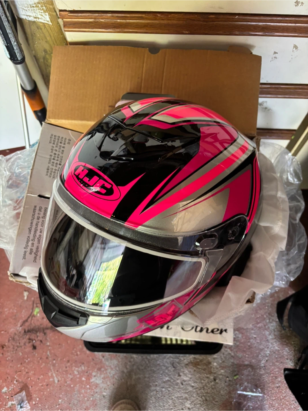 20Selling a HJC motorcycle helmet with a striking pink and black design! It comes with its original box for safe storage