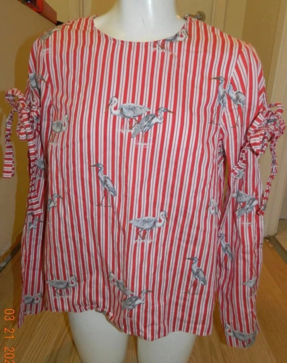 zara woman Red & White Striped Blouse with Bird Print..size s