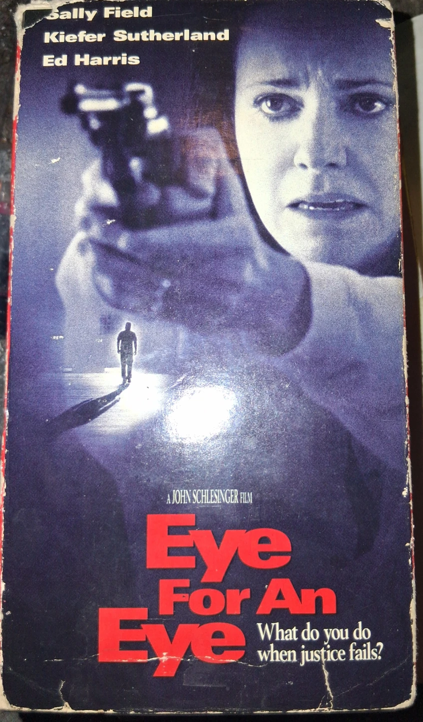 This is the Eye For An Eye VHS movie, starring Sally Field, Kiefer Sutherland, and Ed Harris. Directed by John Schlesinger. Pickup only unless near intersection of Oxford and Gammage Street.