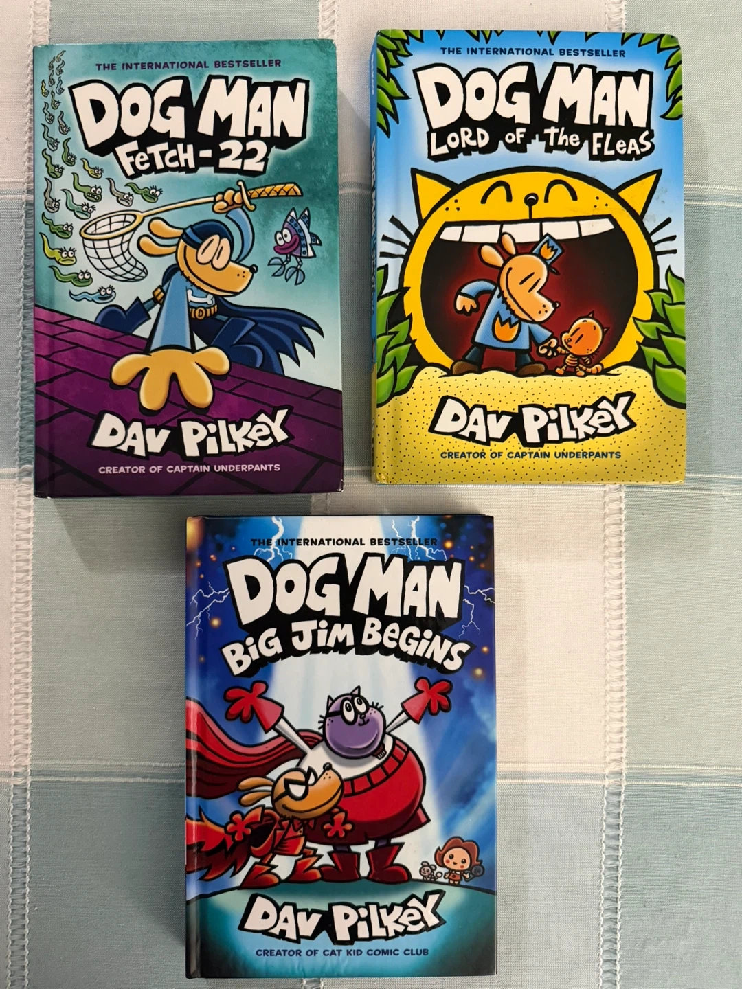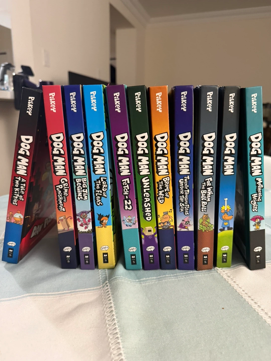 Selling a complete set of 11 Dog Man hardcover books by Dav Pilkey.