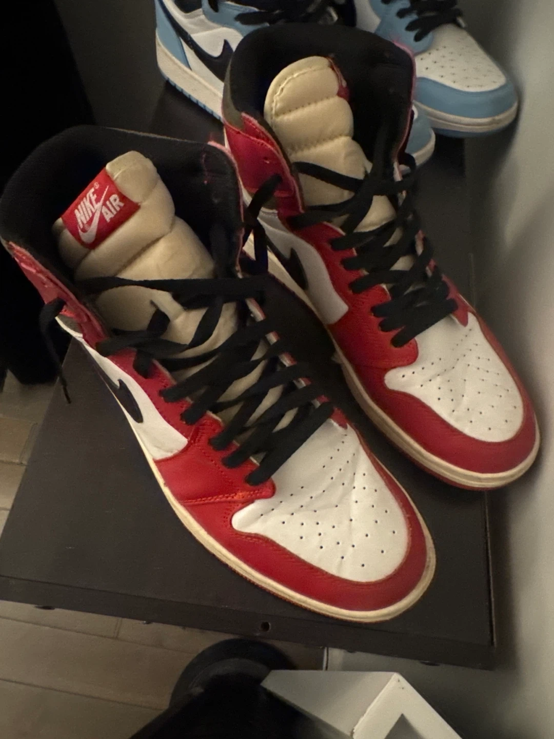 Buy & SellAir Jordan 1 High Chicago SneakersAir Jordan 1 High Chicago Sneakers$162Size 10. Classic red, white, and black high-top Air Jordan 1 sneakers. These are the iconic Chicago colourway. Lace-up closure.ConditionGoodSize10BrandAir JordanWHERE TO MEETCheck LocationView MapSELLERverifiedNeerDowntown Brampton973 reviews2 chats·1 favorites·66 viewsSEND CHAT TO SELLERHi Neer! I’m interested in your listing.Hi Neer! I’m interested in your listing.Get the Karrot app to chatSign In to chat