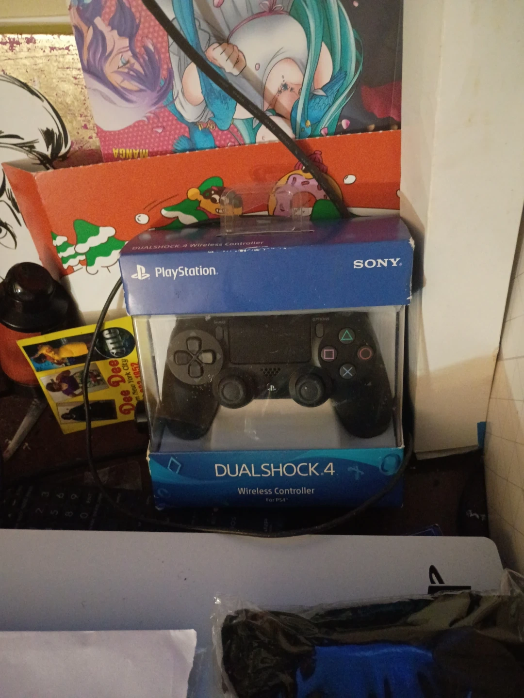 This is a Sony Dualshock 4 wireless controller for PS4. It comes in its original box. Controller is black.