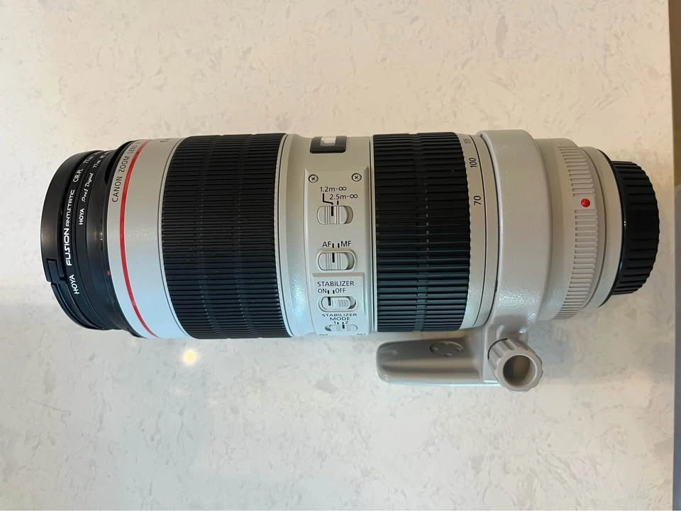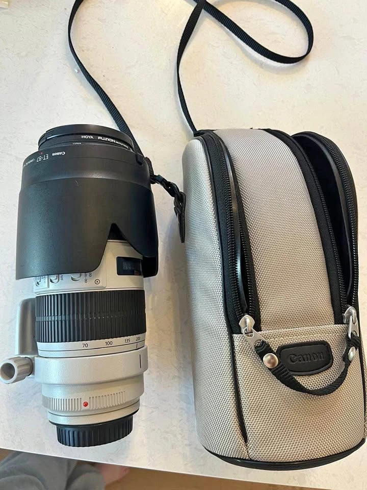 This is a professional L-series telephoto zoom lens, known for its sharpness, fast autofocus, and smooth bokeh. Great for portraits, wildlife photography, sports, weddings, events etc. Excellent condition. The lens has been very well cared for and works perfectly. Used only lightly in studio. No defects, no scratches. One of Canon’s best telephoto zoom lenses.