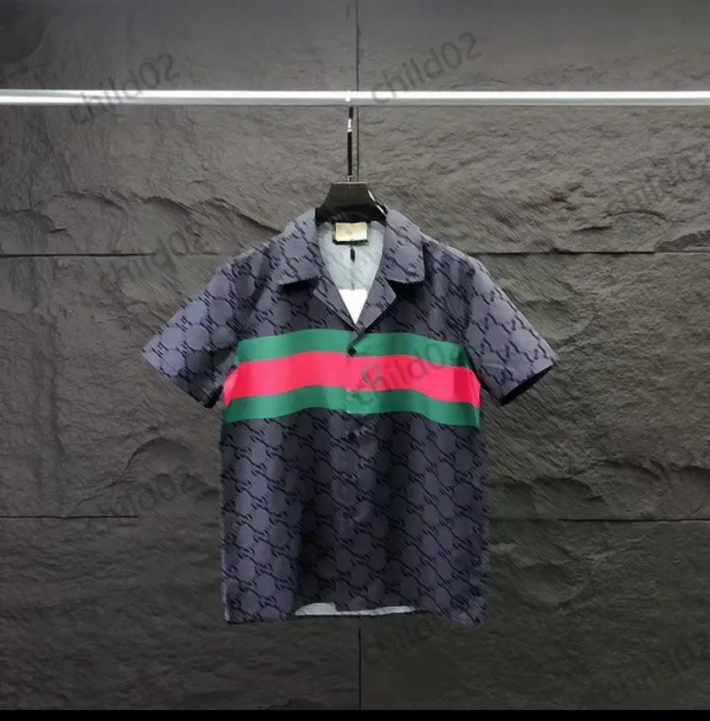This is a stylish Gucci shirt featuring the brand's iconic logo pattern. It has a red and green stripe across the chest. Perfect for adding a touch of luxury to your casual wardrobe