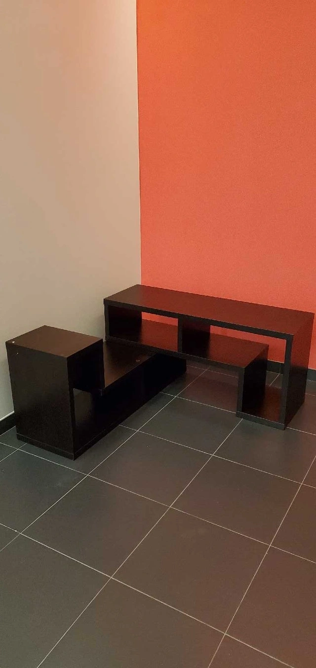 ➡️ This extendable espresso TV stand combines style and functionality, perfect for any living room setup. While it has been a part of our home, it's still in excellent condition and ready for a new space. The sleek espresso finish adds a touch of modern elegance, and the extendable design allows you to adjust it to fit your needs.