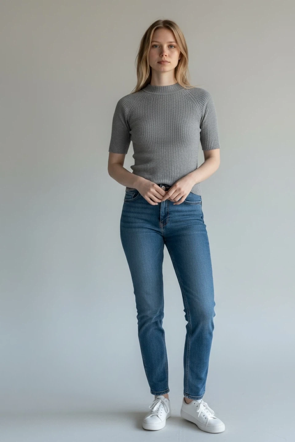 Selling a cute grey ribbed knit short sleeve top. It's in great condition!