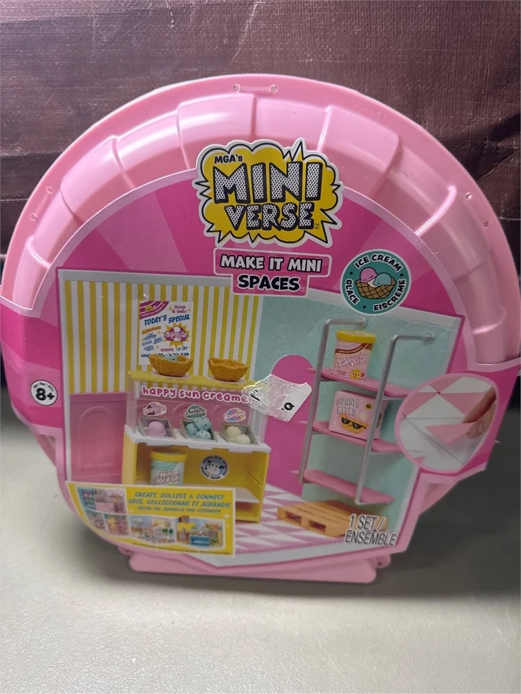 This MGA's Miniverse set lets you create your own mini ice cream shop. It's a fun buildable playset for collectors and kids. Includes display shelves and mini ice cream accessories.