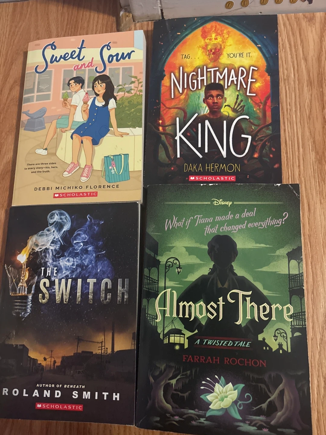 Most barely touched, kids books is the second picture, romance books the third picture, the mystery fantasy books are the last picture